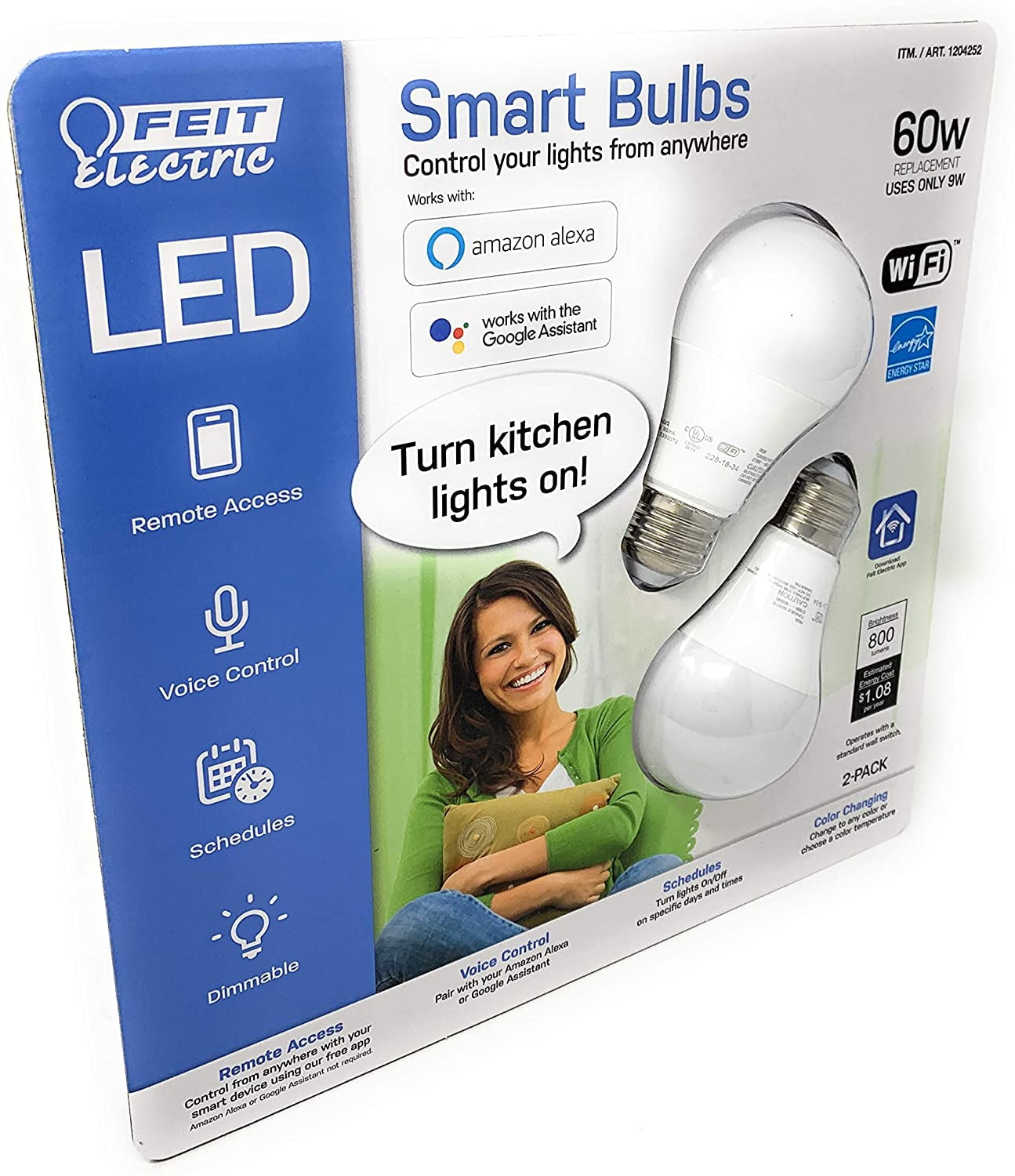 FEIT Electric Smart Wi-Fi LED Color Changing Dimmable 60W Light Bulbs 2-pk White