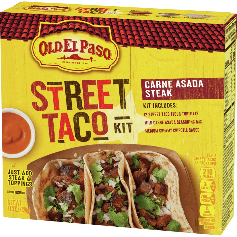 Earn street (taco) cred! Modernize your taco night by creating delicious street tacos at home for the family (about 4 servings). Each kit includes 12 Street Taco flour tortillas, mild Carne Asada seasoning mix, and medium Creamy Chipotle sauce. Just add steak and toppings; we recommend fresh cilantro and onion. Skip the sauce if you’re craving a mild yet flavorful taco or drizzle on some sauce if you want to add a little kick. In about 20 minutes and 3 easy steps, you’ll be ready to gather everyone around the table for a fun food-truck experience at home.