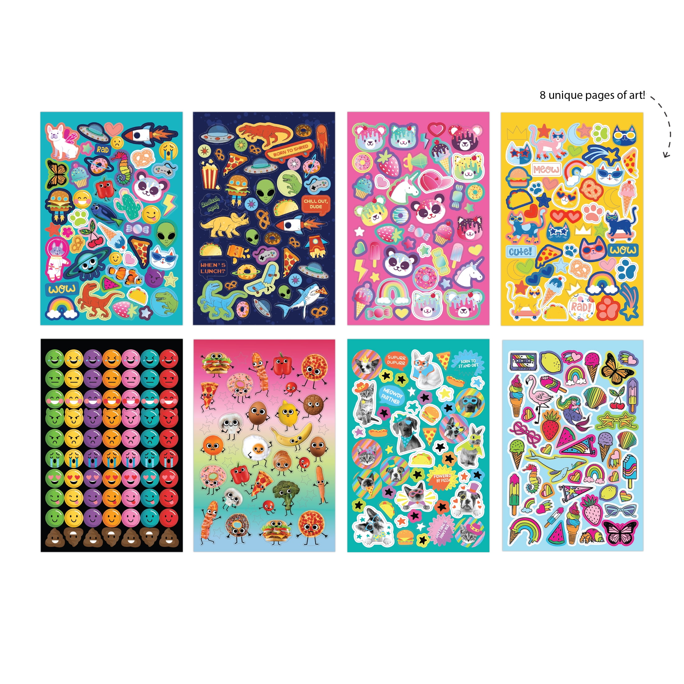 - Stickers feature cool, multicolor puffy textures