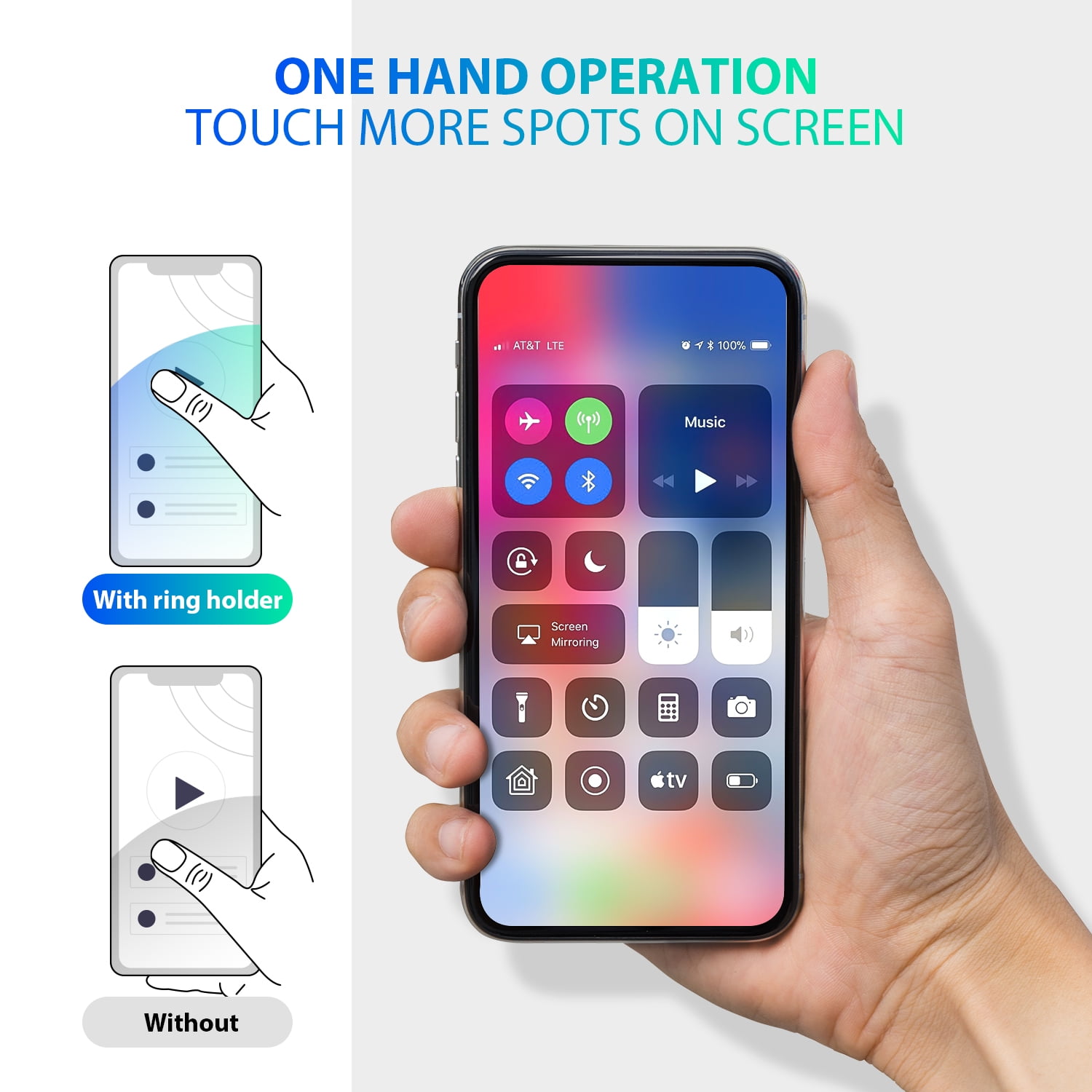- 【HUMANIZED ERGONOMIC DESIGN】Ergonomic design of this kickstand makes it a good finger grip on crowded bus and subways to prevent your phone slipping from your hands.With one finger occupied, hold your phone with a single hand greatly reduce the risk of accidentally dropping down.Also, It is easily to grip phone when you are taking a cup, Ring holder takes your phones stand well on desk, so that you can enjoying watching videos or playing games.