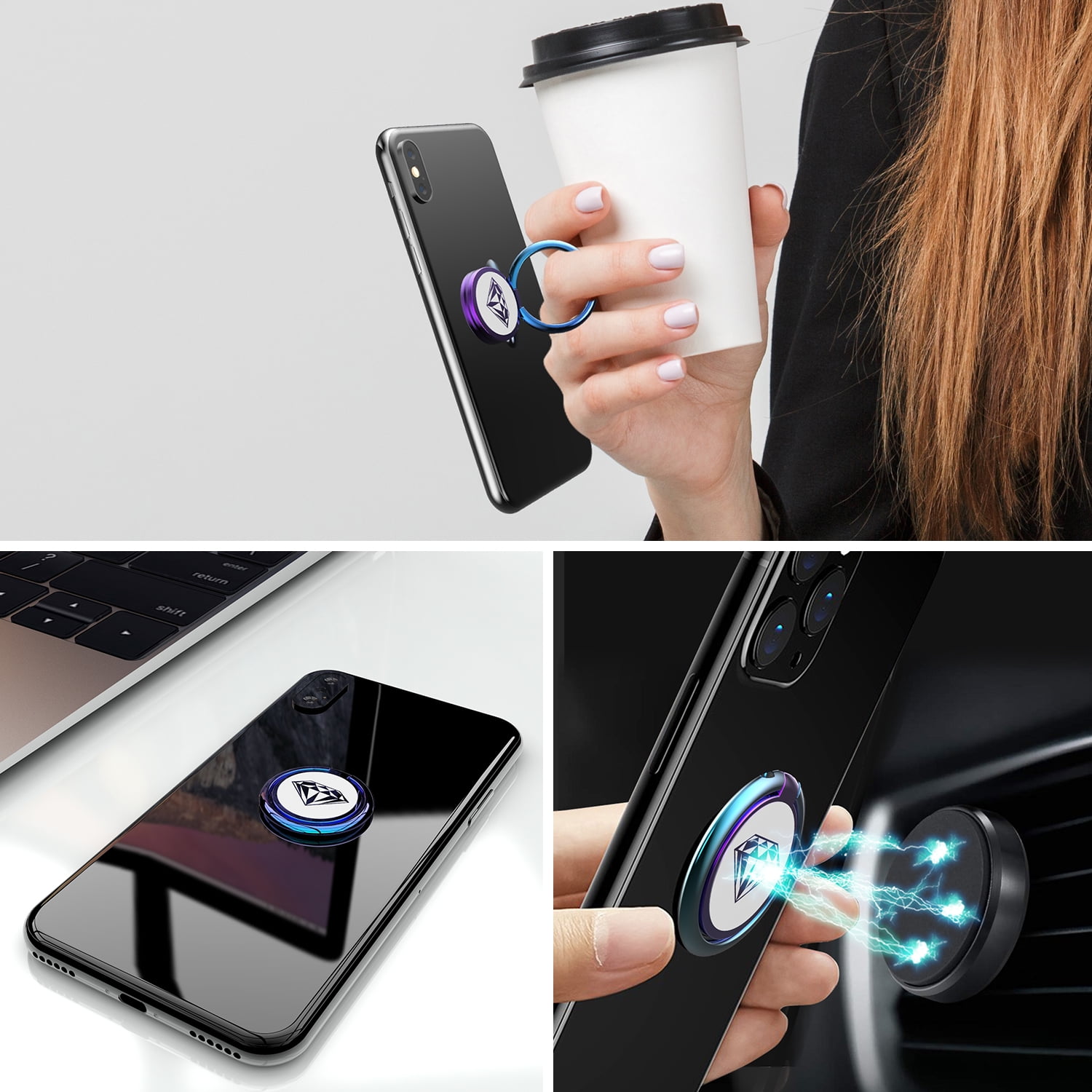 - 【 UNIQUE DESIGN FOR HIGH QUALITY MATERIALS】Allovit phone ring holder use the high-quality zino alloy and stainless steel . Zinc alloy has a good ductility and abrasion resistance, avoid breaking when falling down and it can to stay intact even in dropping accidents. Stainless steel is sturdy and can hold the ring firmly, helps it to become a long-term good stand.The edges of the ring grip are carefully polished to protect your fingers.