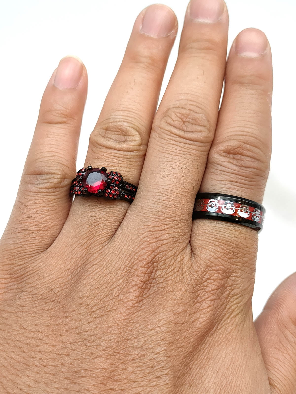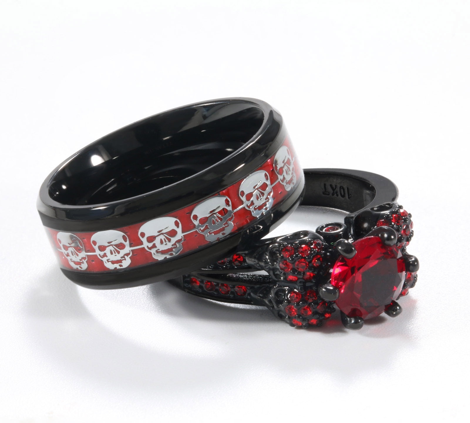 Black and Red Skull Matching Rings