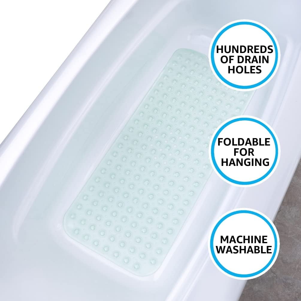 - Oversized Coverage: Stretches the full length of your tub or shower, providing 30% more coverage than the average non-slip bath mat for added protection. Measures 39"L x 16"W.