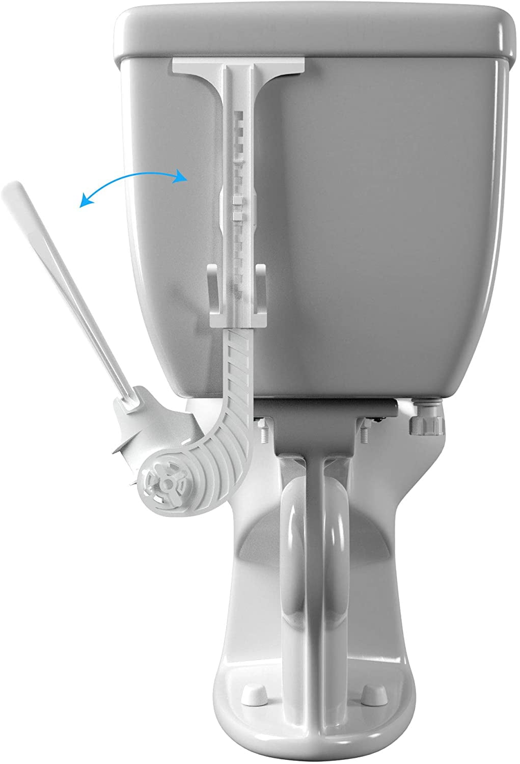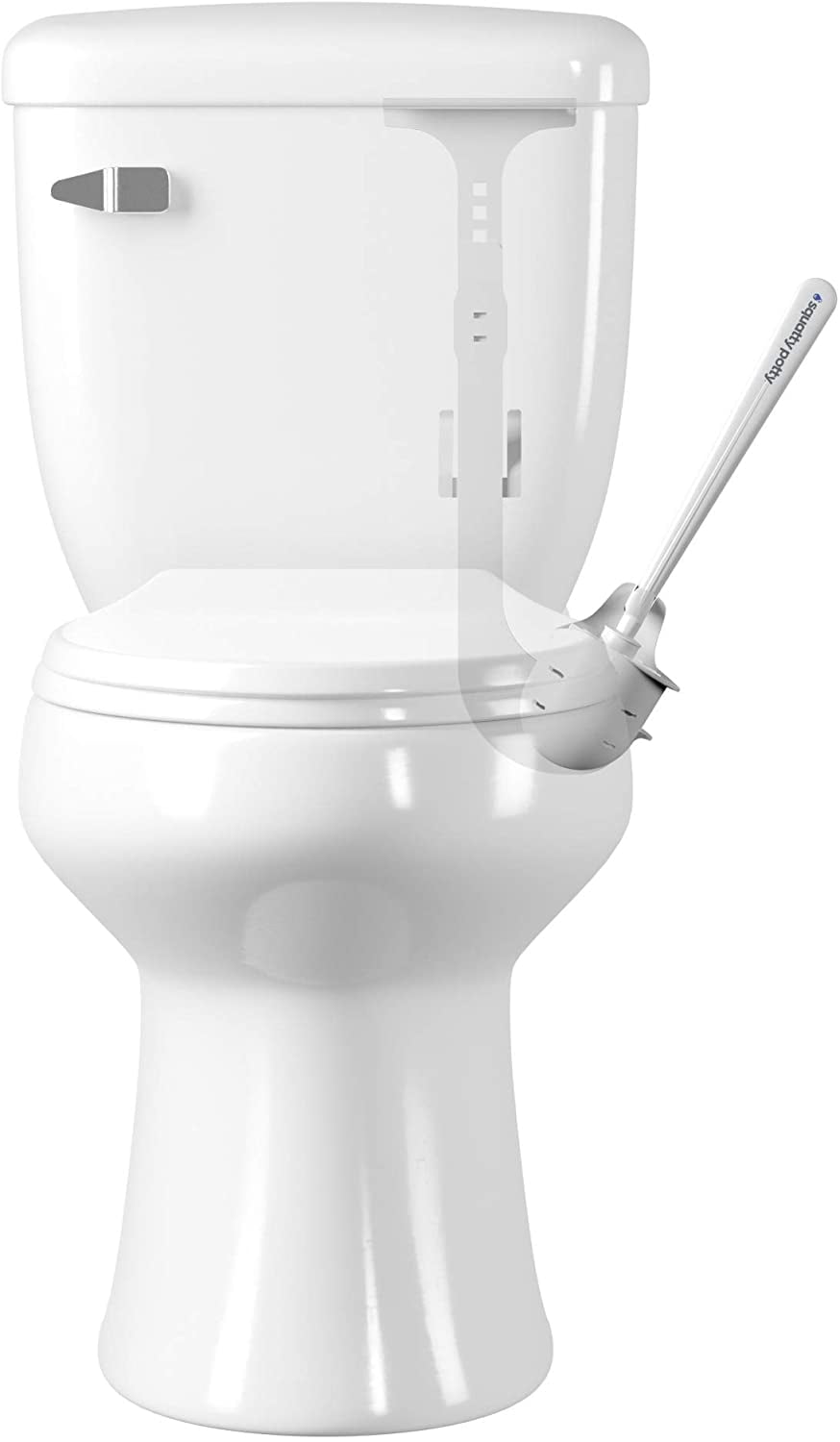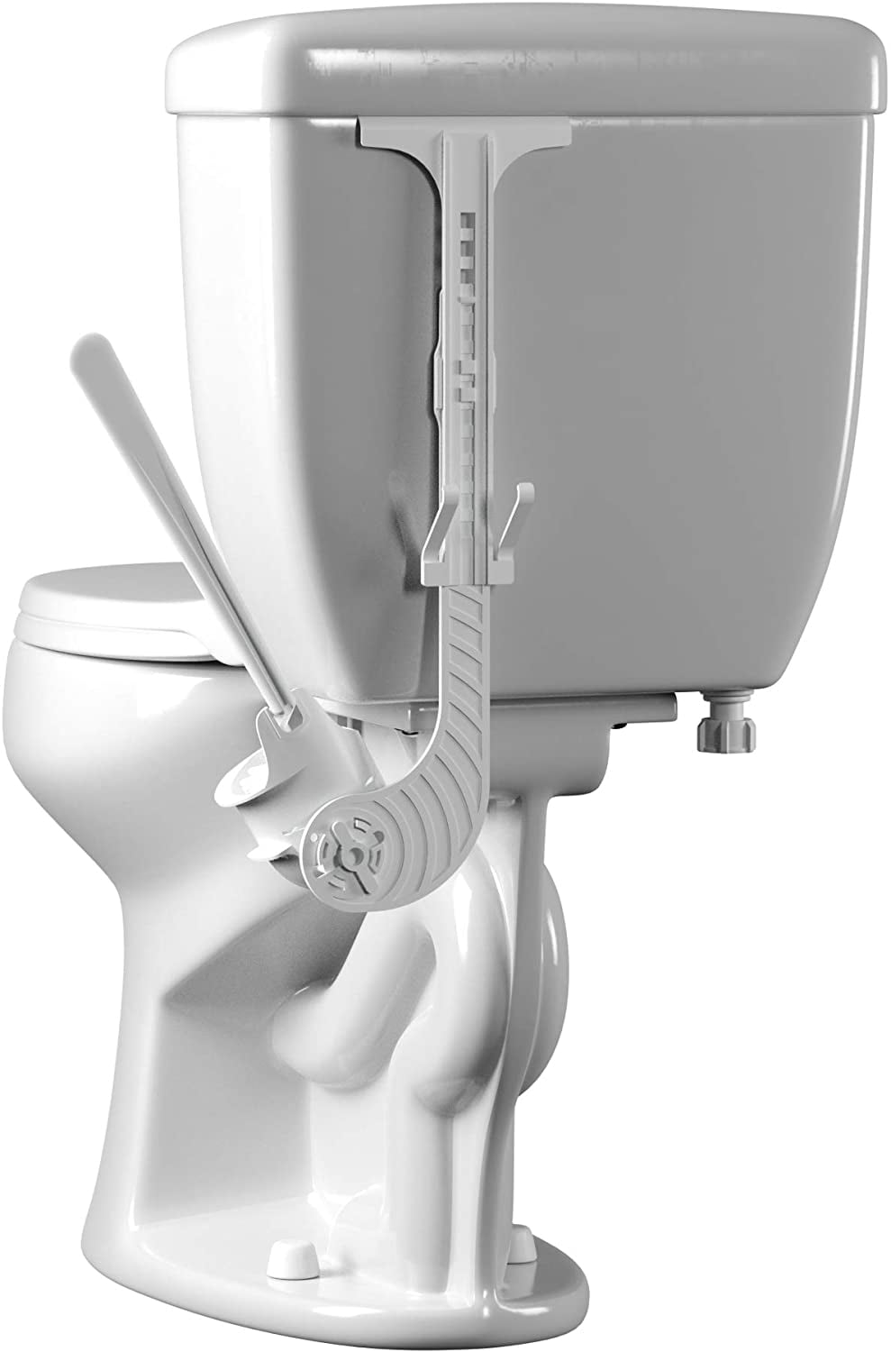 Hooks behind the tank and hides behind the bowl fit toilet tanks with lid thickness of 1/2" or less and tank length of 15" or less. Fits on the right side of the toilet only, Easy installation. Simply lift off the tank lid, hang the caddy, put the lid back on, and you are set. Compact space-saving design requires only 1/2" space behind the toilet, to tilt the handle to the side for easy access. Adjustable height options.