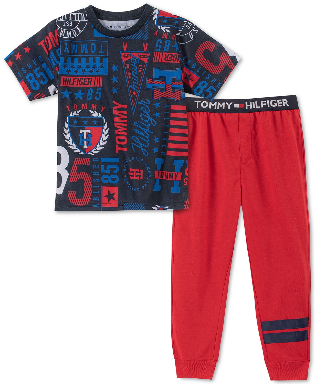 Tommy Hilfiger Toddler, Little & Big Boys 2-Pc. Collegiate Pajama Set (Red, XXS/2-3 yrs)