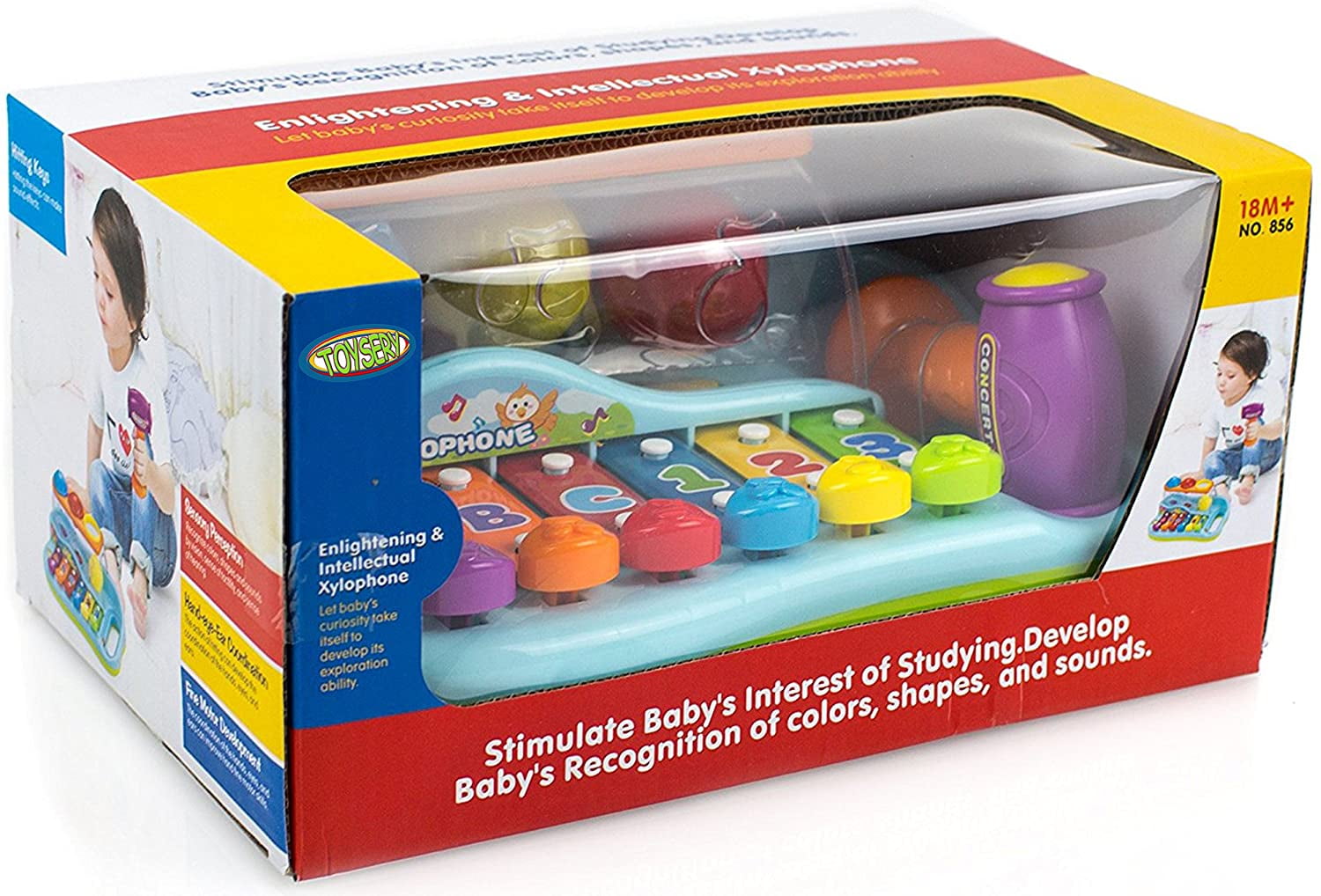 Toysery kids musical piano toy will keep your child entertained with its colorful keys and noise making buttons. This toddler music learning piano toy set that helps kids learn numbers and build educational skills, while having a fun time. Your baby has the option of pressing the buttons or hitting the keys of the xylophone with a toy hammer. Three balls are also included with the xylophone that your baby can hit into the holes making a sound effect when the balls hit the keys. All-in-one early music learning Xylophone piano pounding bench that is convenient, portable, and well designed.