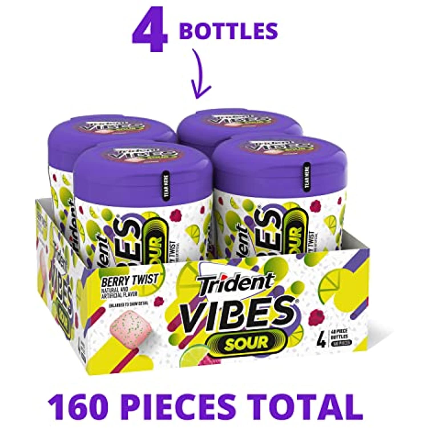 Trident Vibes Sour Berry Twish Sugar Free Gum, 4 Bottles of 40 Pieces (160 Total Pieces)