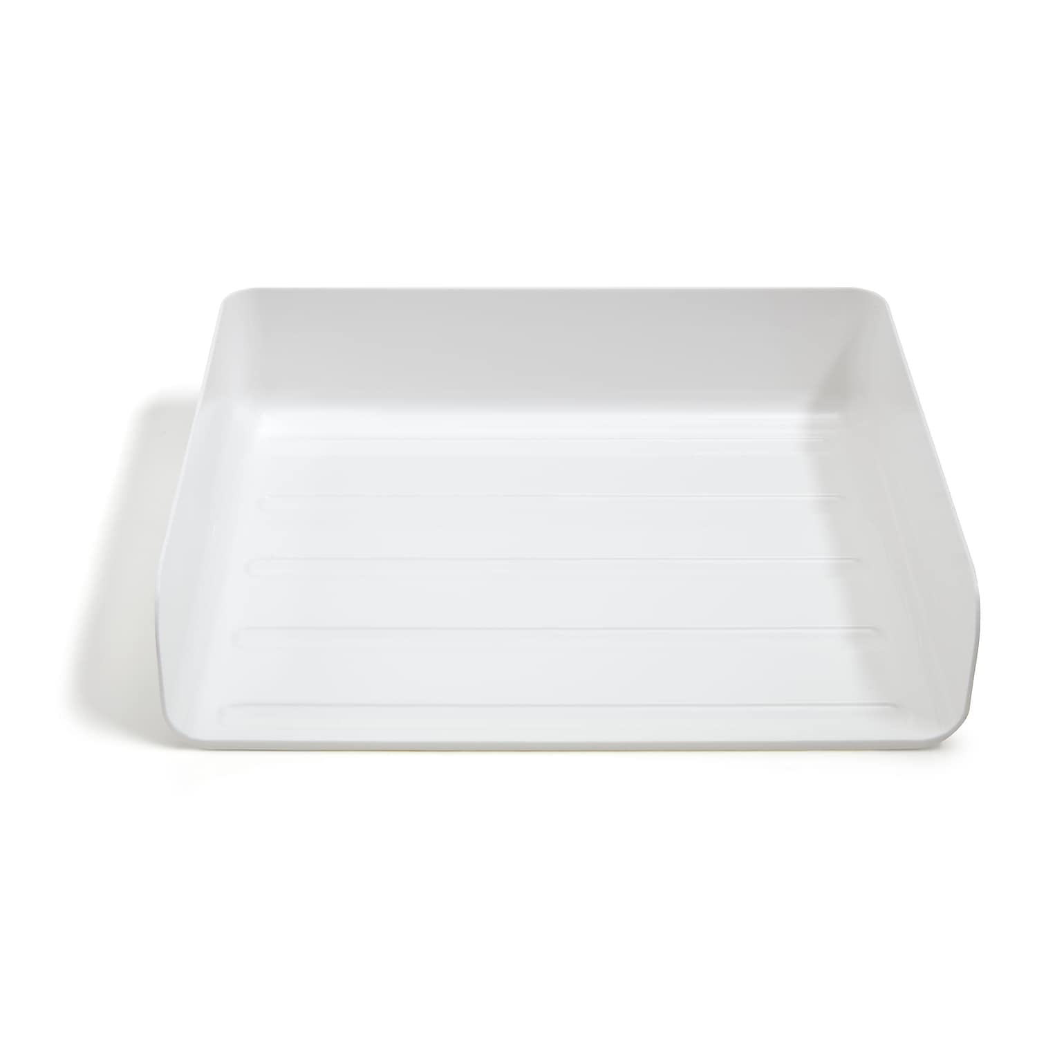 Upgrade your office inbox setup with this 2-pack of TRU RED™ side-load letter trays.Keep paperwork clutter to a minimum with these letter trays. The stacking design saves space on your desk while keeping documents neatly sorted, and the side-load openings make it easy to find a file folder or form during important calls. With a crisp white color, these TRU RED™ side-load letter trays bring a bright, contemporary look to your office. Stackable side load letter tray helps keep your desk and papers organized. Designed with a white glossy finish plastic that complements any work space. Use stand alone or mix and match with other pieces. Create a custom, tiered desk organizer when stacked with other TRU RED™ desk accessories. Comes with 2 letter trays. Each tray measures 12.63"L x 9.72"W x 3.01"H and holds up to letter sized paper. Sold As 2/Pack.