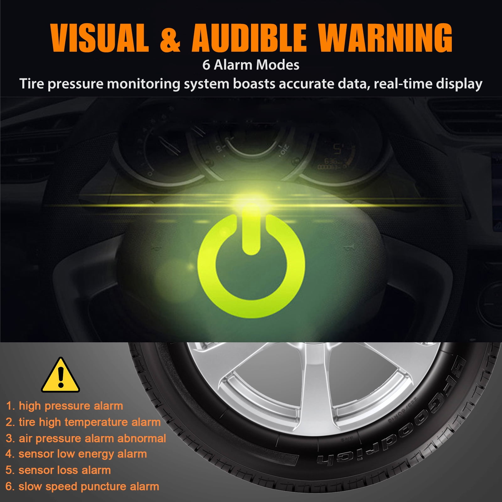 - The tire pressure monitoring system has six-alarm modes that boast accurate data, real-time display.