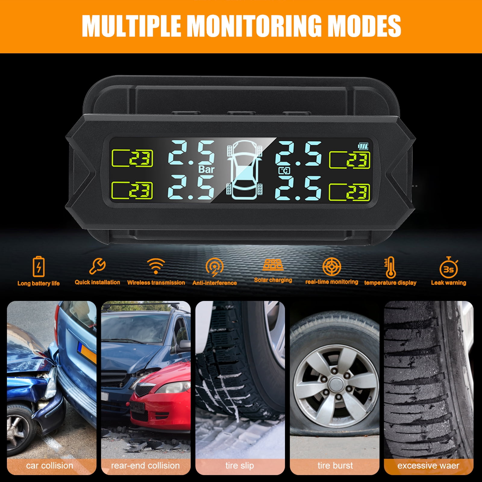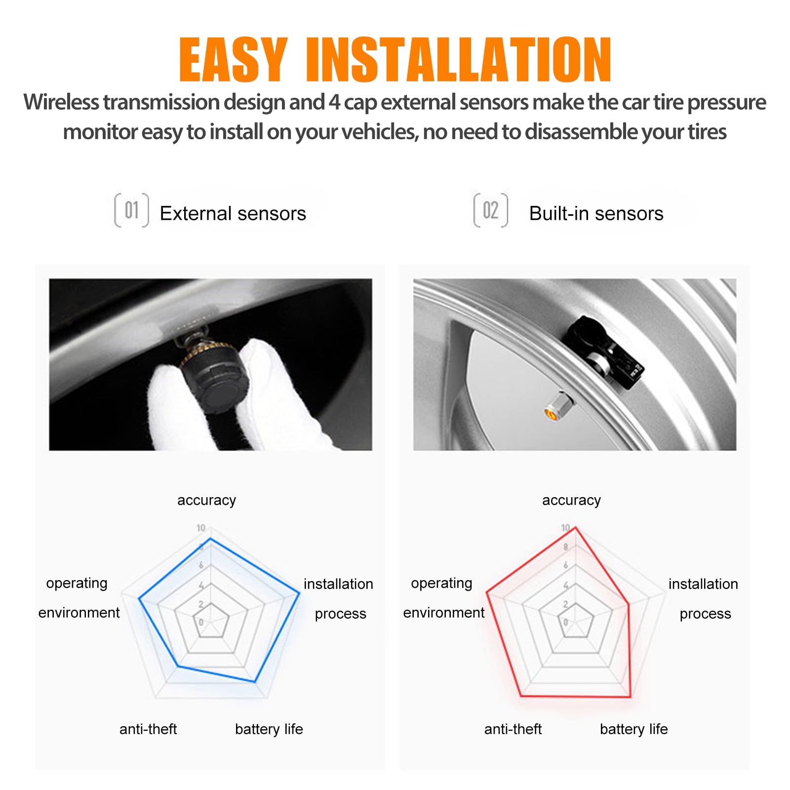 - 4 external sensors make the car tire pressure monitor easy to install on your vehicles.