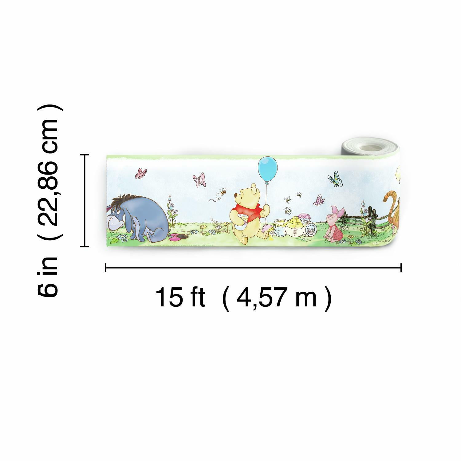 ADD CHARM AND PLAYFULNESS TO YOUR WALLS WITH DISNEY WINNIE THE POOH PEEL AND STICK BORDER.Join everyone’s favorite honey loving bear Winnie the Pooh and his pals Tigger, Eeyore, Roo, and Piglet as they explore the fun and excitement of the Hundred Acre Wood. Great for any little boy’s or little girl’s bedroom or even a Pooh themed nursery, our Winnie the Pooh Peel and Stick Border provides an easy-to-use decor solution. Simply peel away the backing and stick to any smooth, clean surface.USE OUR DISNEY WINNIE THE POOH TODDLER PEEL AND STICK BORDER IN:BedroomsLiving RoomsBathroomsPlayroomsNurseriesFurnitureAnd so much more!OUR PEEL AND STICK BORDERS ARE:RepositionableGreat for bedrooms and other living spacesEasily installedBacked by peel and stick technology100% safe for wallsGuaranteed removable in full stripsBest on smooth, clean surfacesMade in the USA ??Printed on high-quality vinylOfficially licensed by Disney