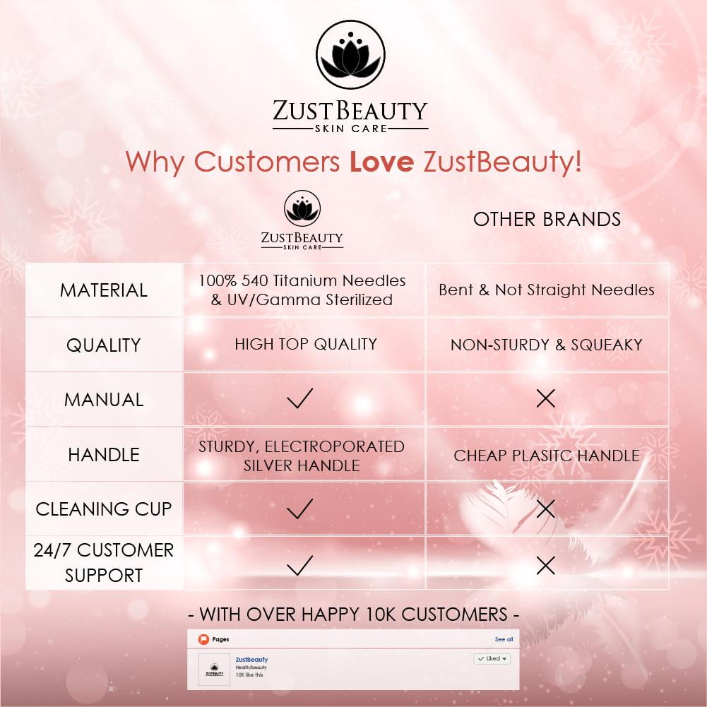 ZustBeauty Derma Roller Microneedle Skin Care Tool – Titanium Needles Set