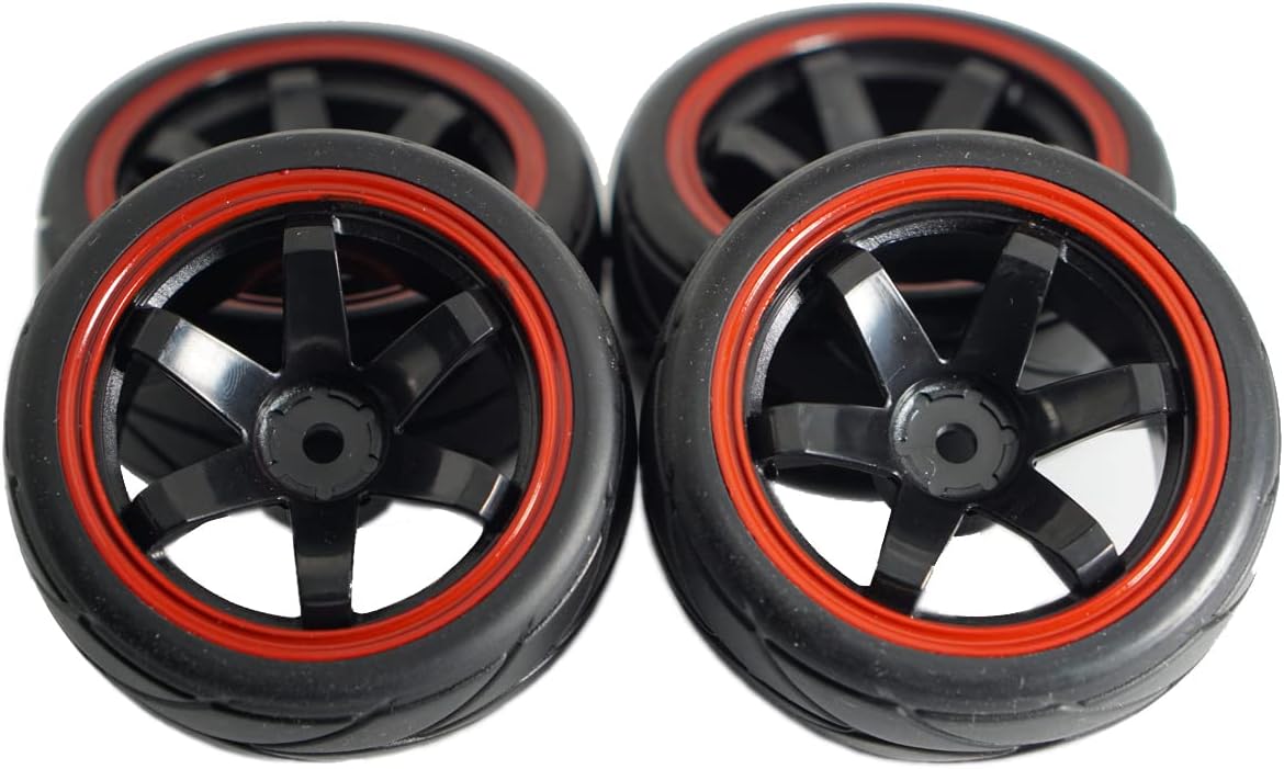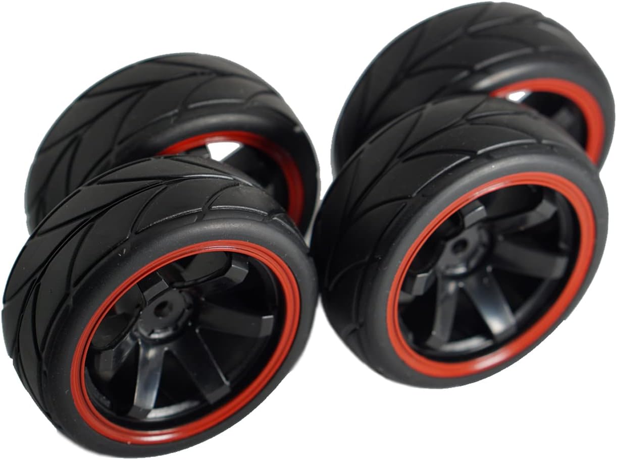 Fits for RC 1: 10 on-road Racing car,touring car,for example,compatible with Redcat Hpi Tamiya Associated HSP Exceed RC rc car etc Tire Parameter: Tire Outside diameter: 65mm Inner diameter: 44mm Hexagon coupling: 12mm Tires wide: 27mm Material: Tire:Soft Rubber Wheels:PlasticWith foam in the tire Package includes: 4 x Wheel Rims and Tires