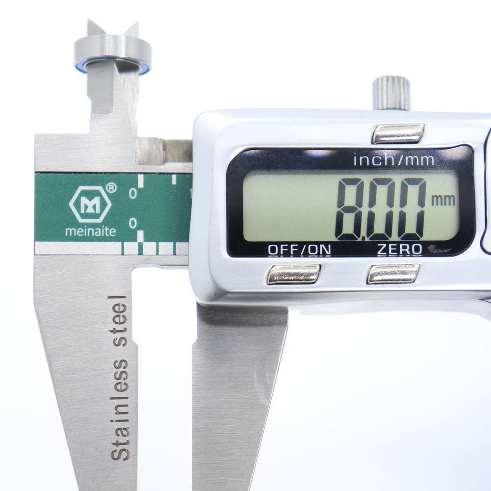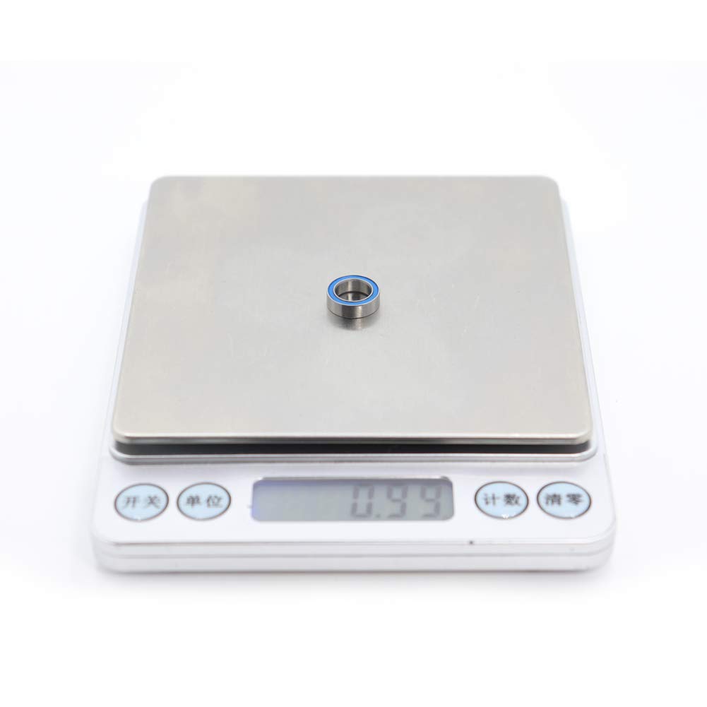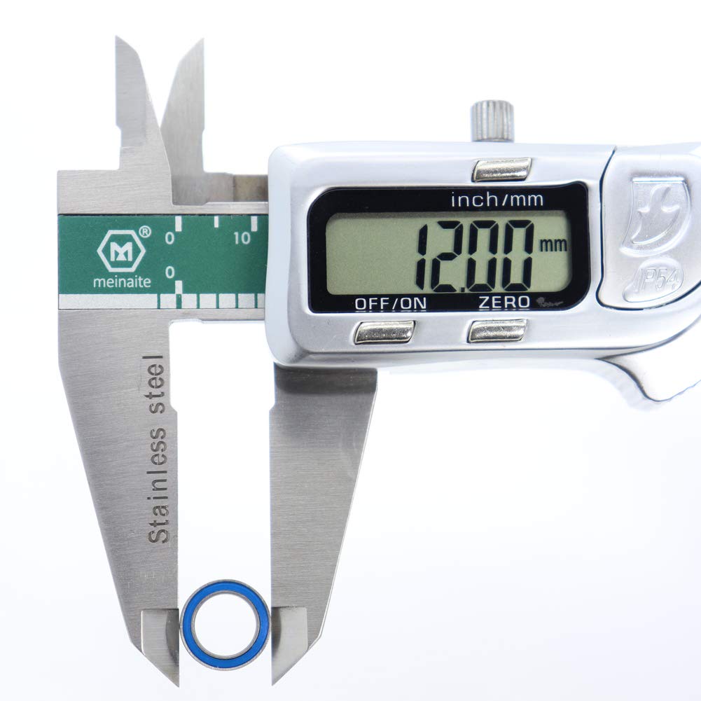 Part SKU# MR128RS-BLUE-10PC Chrome Steel 52100 (GCr15) ABEC 3 Precision Races Hard Chrome Steel 52100 (GCr15) Balls Rubber Seals to Help Fight Dirt Great Quality & Value For Applications Size:ID, OD, Width: 8x12x3.