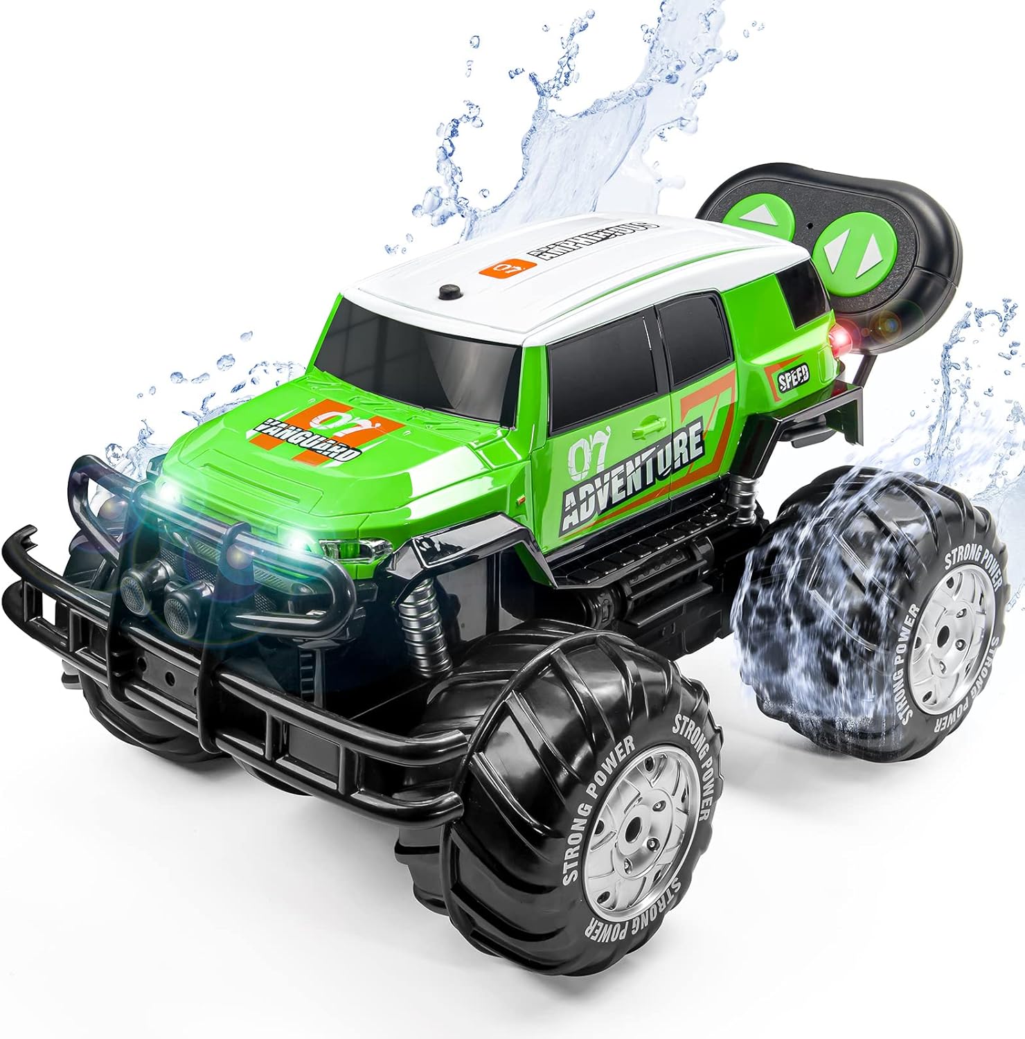 IPX6 WATERPROOFThis amphibious rc car has a waterproof level of up to 6, which can roll in the water, and can drive in the water on both sides; the remote controller is also fully waterproof. You don”t have to worry about getting water into the car.