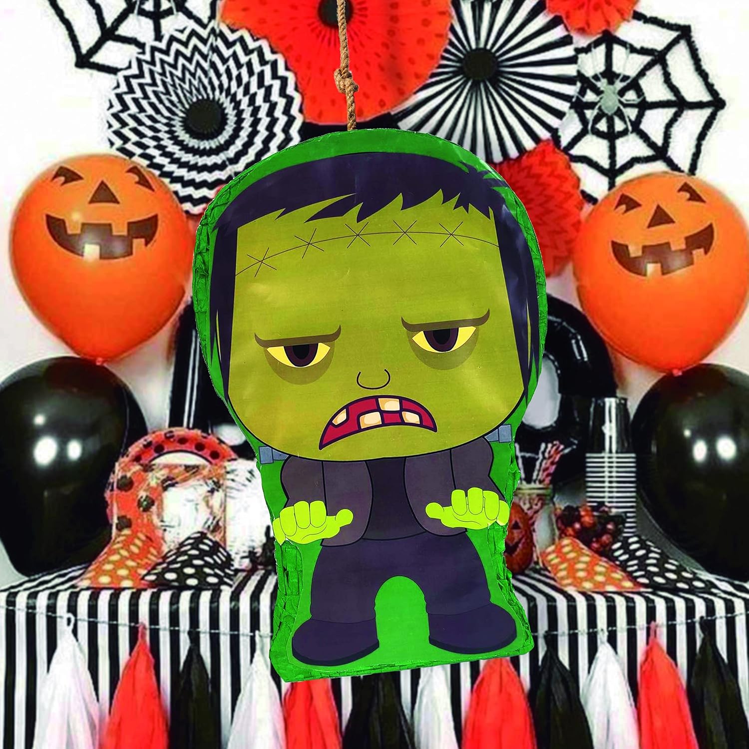 This bright-colored Frankie pinata will delight kids and adults at your Halloween party! Pinata measures 17 inches high by 13 inches long by 4 inches deep.