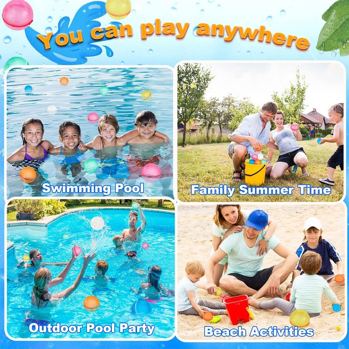 Magnetic Reusable Water Balloons, Quick Fill and Self-Sealing Interesting Toy for Boys Girls and Kids Playing in Swimming Pool, Beach or Outdoor Enjoy Splash Fun (6 Packs)