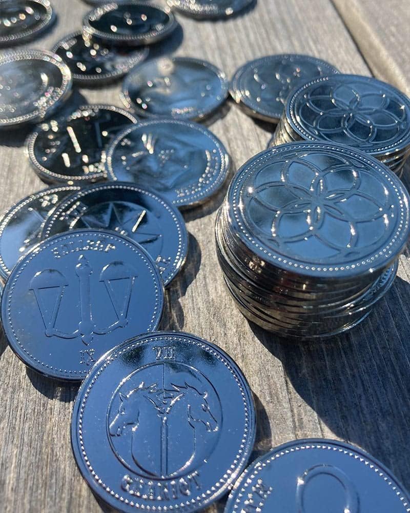 Pull one coin from the bag, or shake them up and let them go! There are no “rules”with these seemingly magical tokens of the 22 Major Arcana, they can be used to choose a significator, as guidance for your day, or playfully as a game.