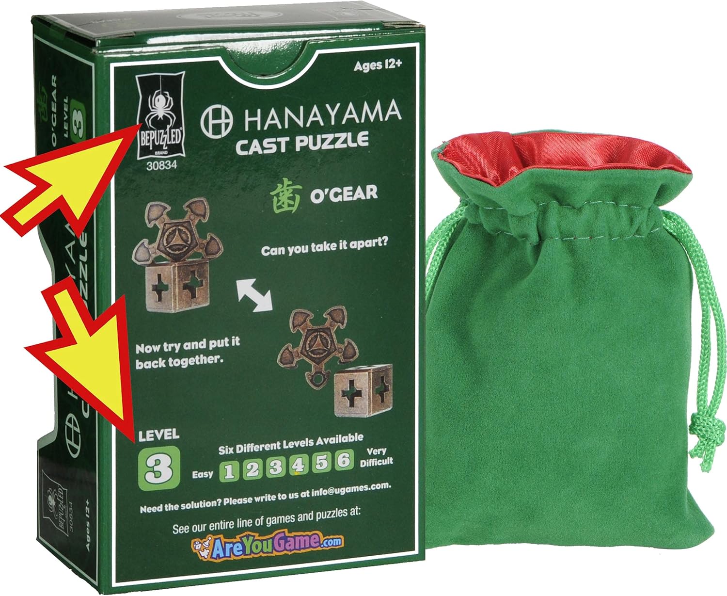 Official Hanayama Puzzles are packaged in the dark green box with see-through front.