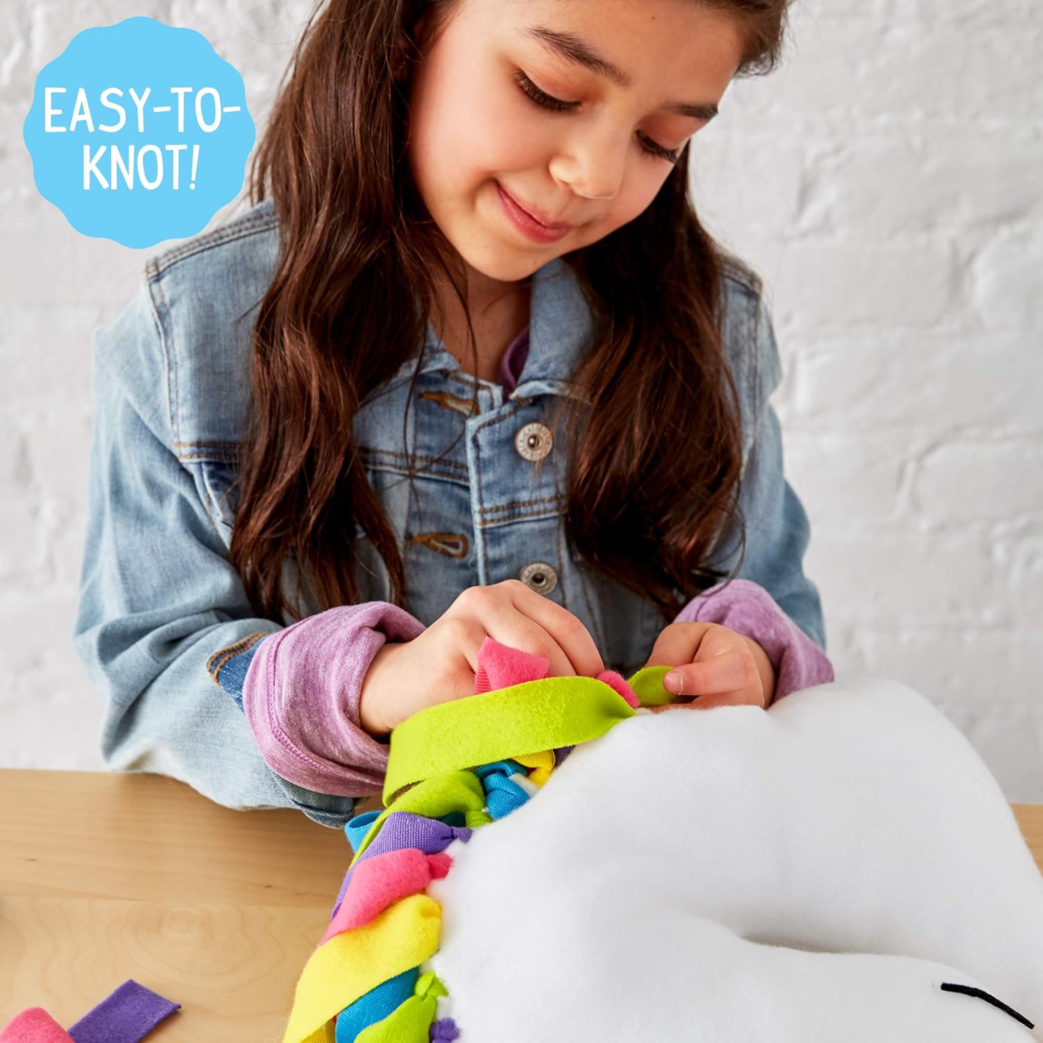 Do you believe in unicorns? We sure do! Magic is at your fingertips with the Made By Me Make Your Own Unicorn Pillow! This no-sew pillow project is a breeze to complete — just fill the pre-sewn pillow case with the plush fiberfill, then give it a rainbow mane using the felt strips — knot them and you’re done! No two unicorns are the same, you know, so make yours truly unique with the glitter stickers! Your bedroom is ready for your new soft, sweet friend! This jumbo unicorn pillow is recommended for crafters age 6 and up.