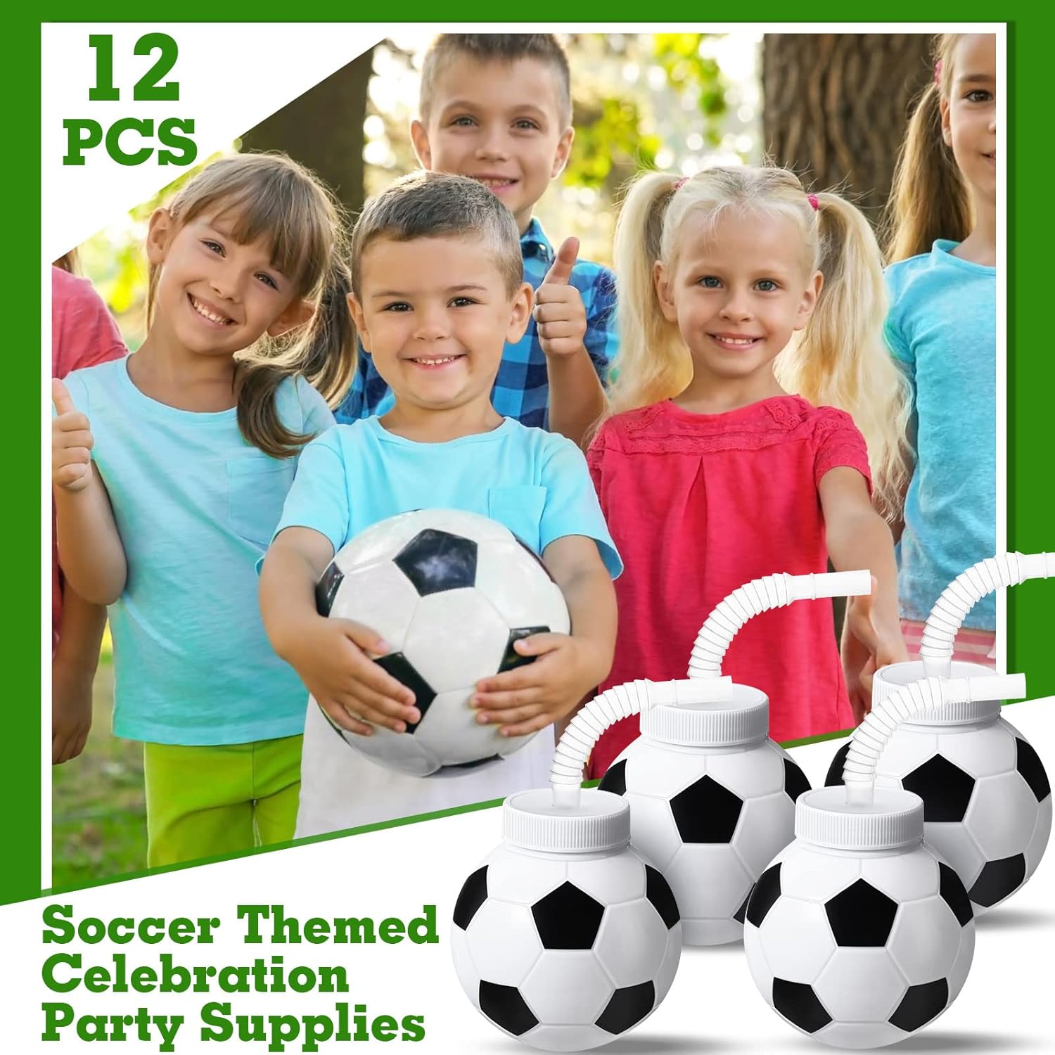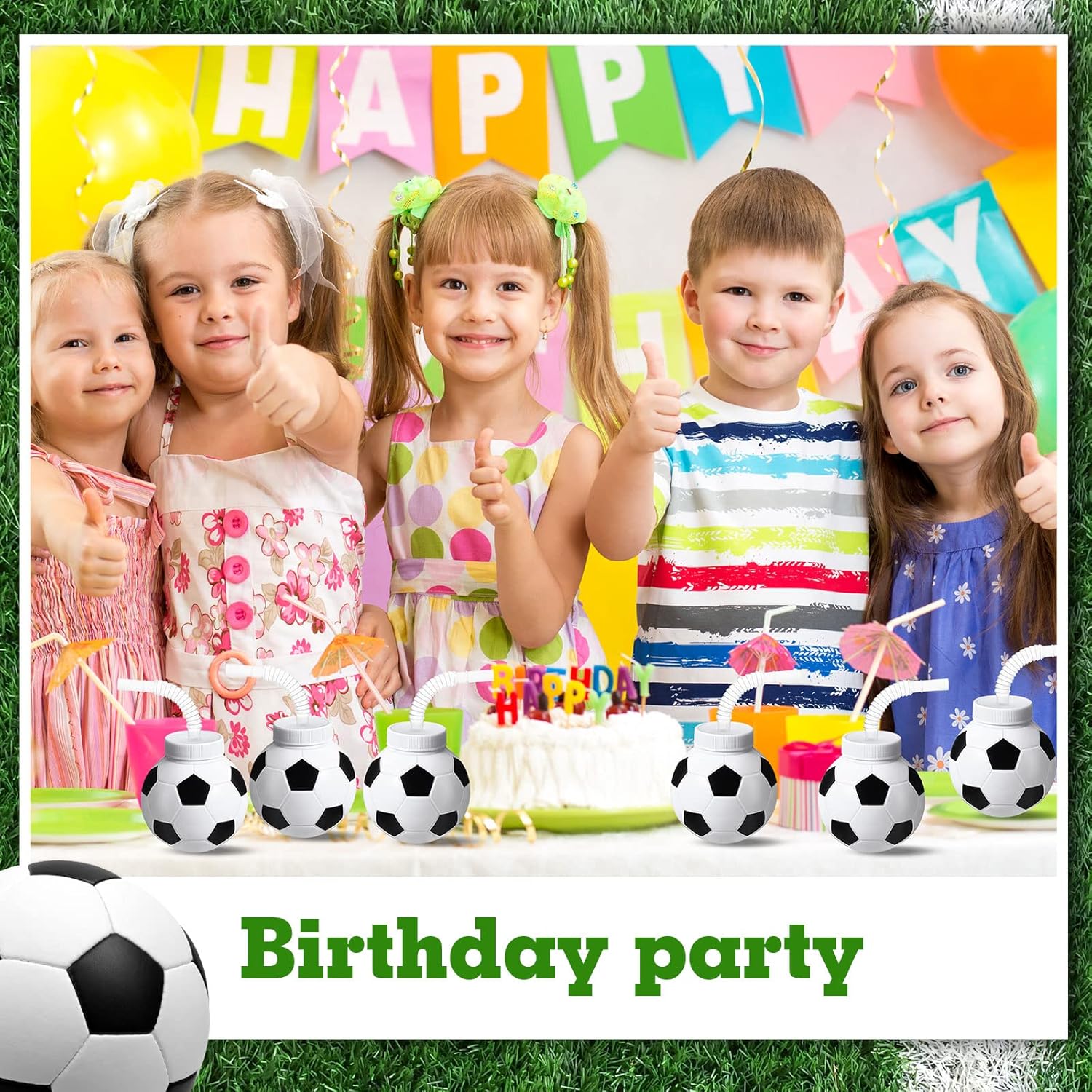 6 oz Plastic Reusable Soccer Ball Shape Cups Soccer Party Favors For Kids Birthday Sports competition Soccer Fans Players Theme Party Supplies Features: Interesting soccer ball cup: This soccer cup is designed in the shape and pattern of the classic black and white soccer ball, has a capacity of 9.