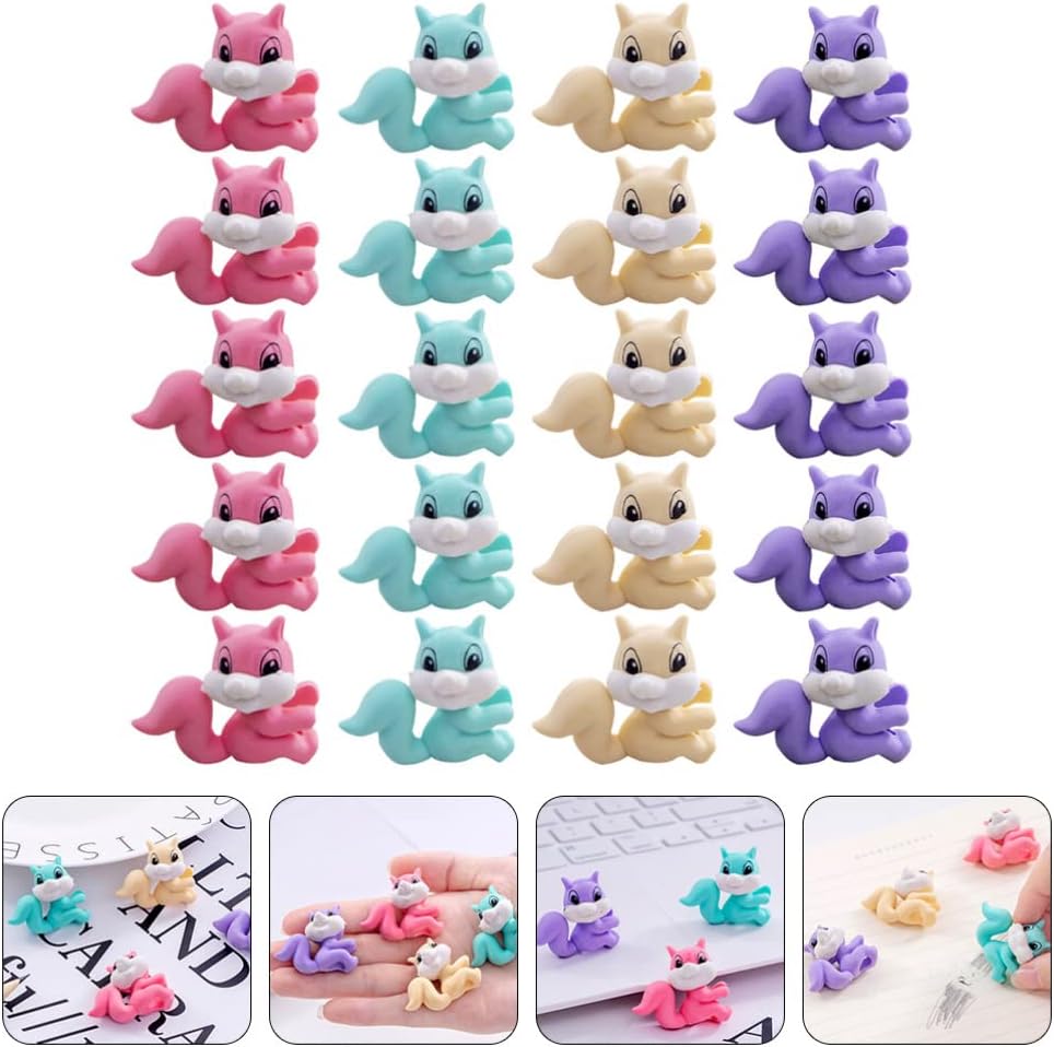 Description Squirrel Shaped Pencil Erasers- You will get about 20 pieces of mini erasers with 4 different colors in realistic squirrel shapes, each one can be taken apart and reassembled on pencils, which is suitable for school and kids.
