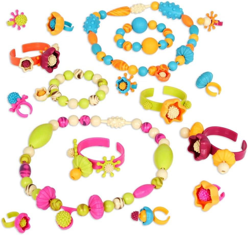 Pop-Arty Jewelry Fashion Kit features 500 unique shapes and designs, including 12 rings and 6 bracelets, that are fun to create and wear.