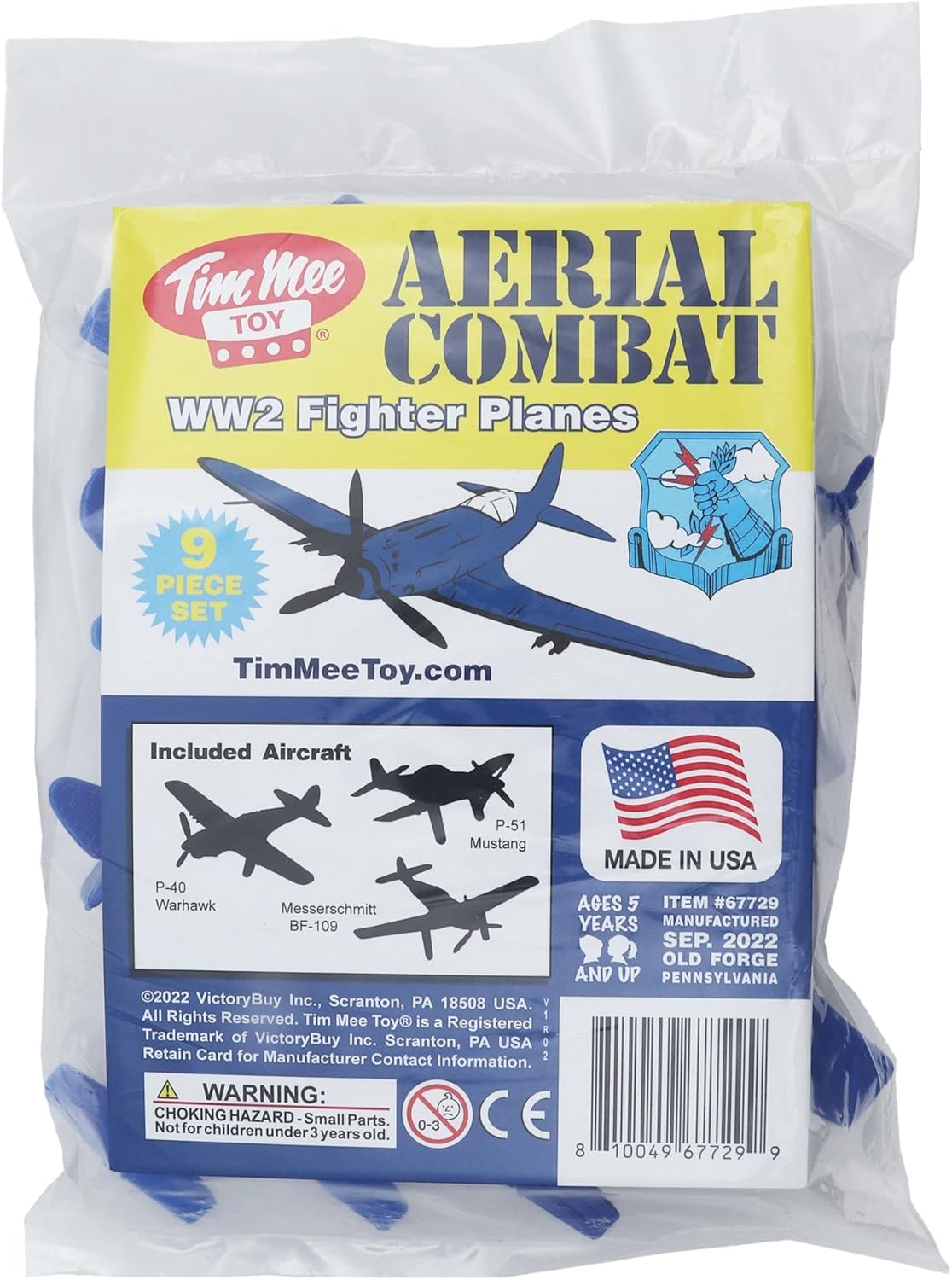 This 9 piece set includes 3 each P-51 Mustang, P-40 Warhawk, and Messerschmitt BF-109.