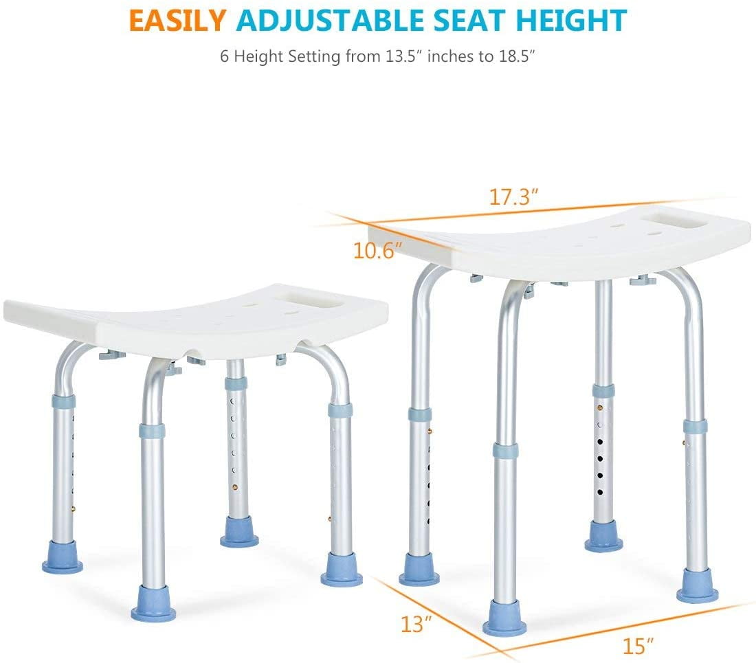 OasisSpace Shower Chair, Adjustable Bath Stool with Free Assist Grab Bar – Medical Tool Free Anti-Slip Bench Bathtub Stool Seat with Durable Aluminum Legs for Elderly, Senior, Handicap & Disabled
