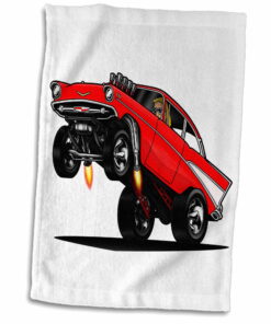 3dRose illustration of a drag racing 57 tri five in a wheelie at the strip – Towel, 15 by 22-inch