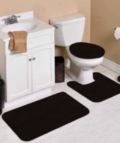 3PC 5 BLACK BANDED BATHROOM SET BATH MAT COUNTOUR RUG LID COVER PLAIN SOLID COLORS