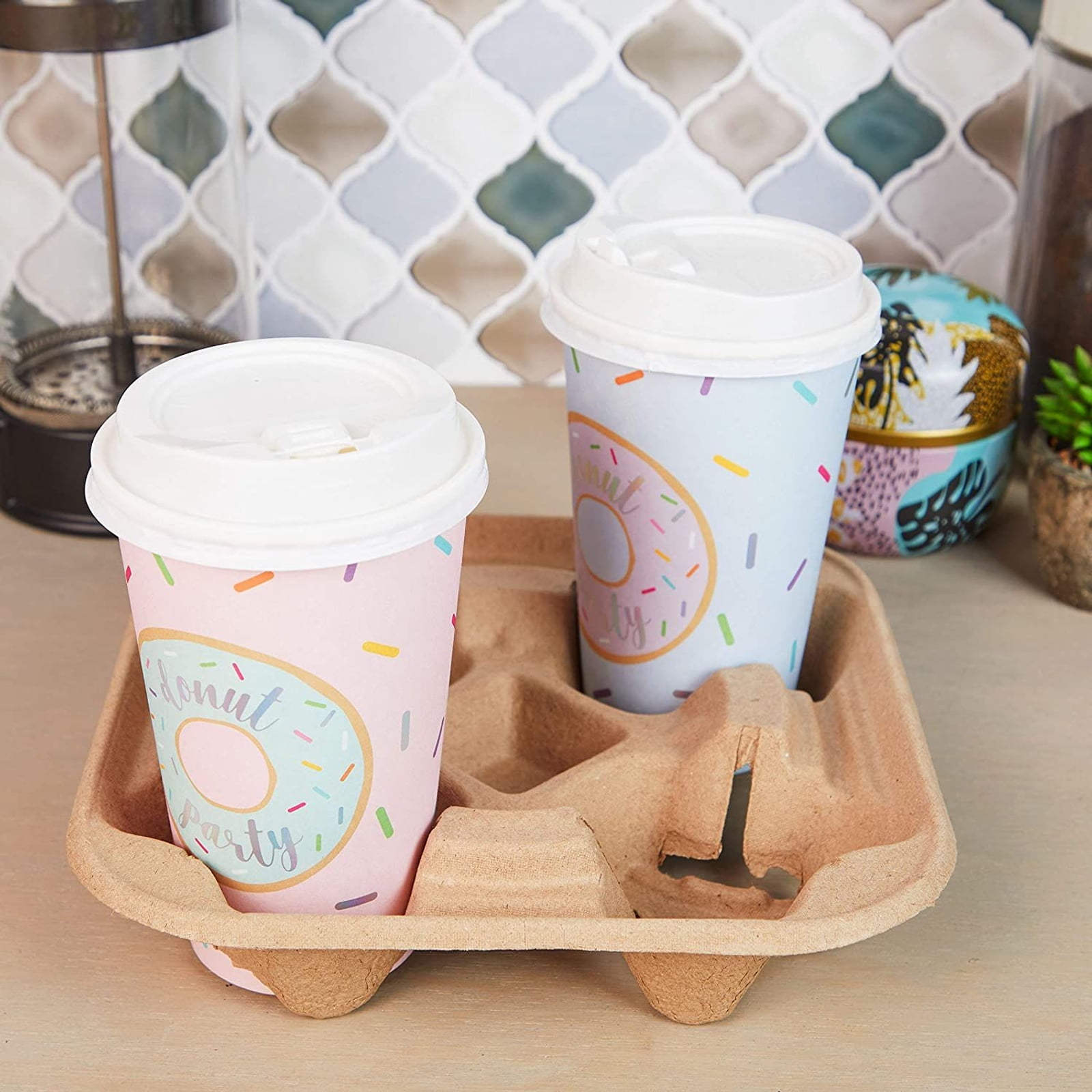 60 Pack Disposable Paperboard Coffee Drink Caddy Carriers, 4 Cups Holders for Delivery, 8.5′