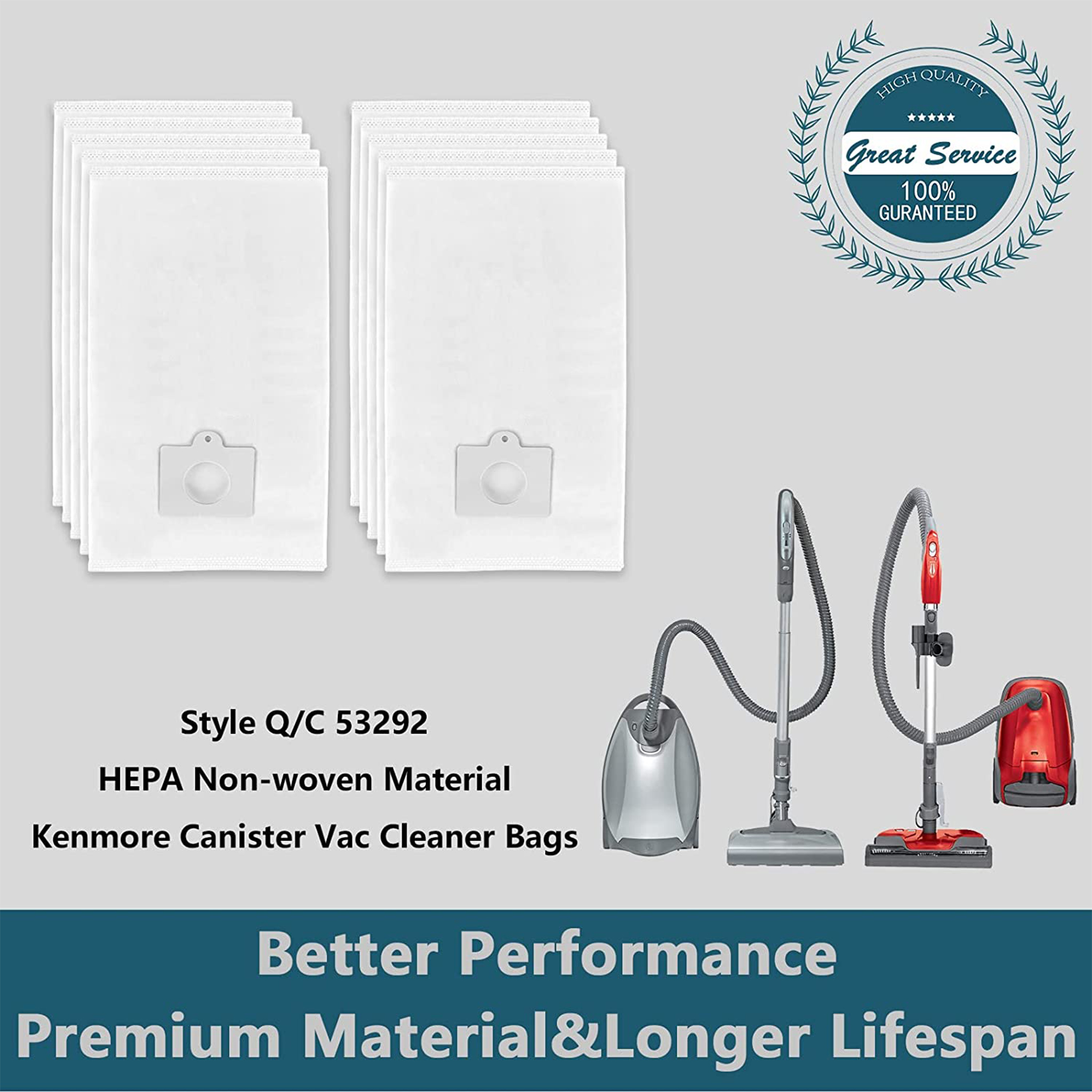 AMI PARTS 53292 Type Q/C Canister Vacuum Bags 10 Pack 5055 50558