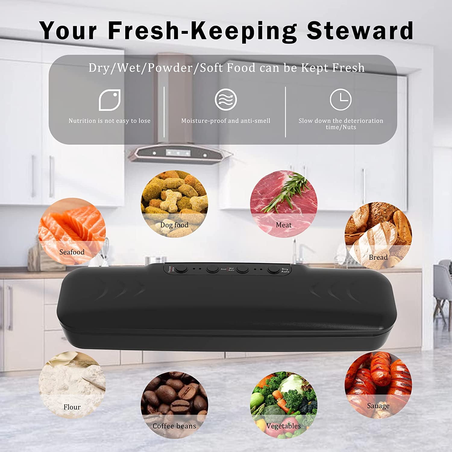 Anzek Vacuum Sealer with 10 Vacuum Sealer Bags Automatic Food Vacuum Sealer Machine Electric Air Sealing Preserver System for Food Preservation(Black)