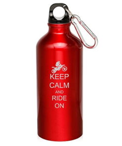 20oz Aluminum Sports Water Bottle Caribiner Clip Keep Calm and Ride On Dirt MX Bike (Red)