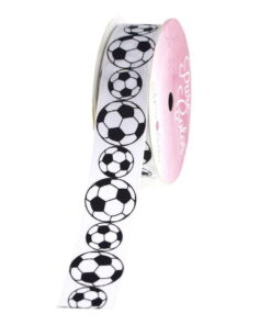 Soccer Ball White Grosgrain Ribbon, 7/8-inch, 5-yard