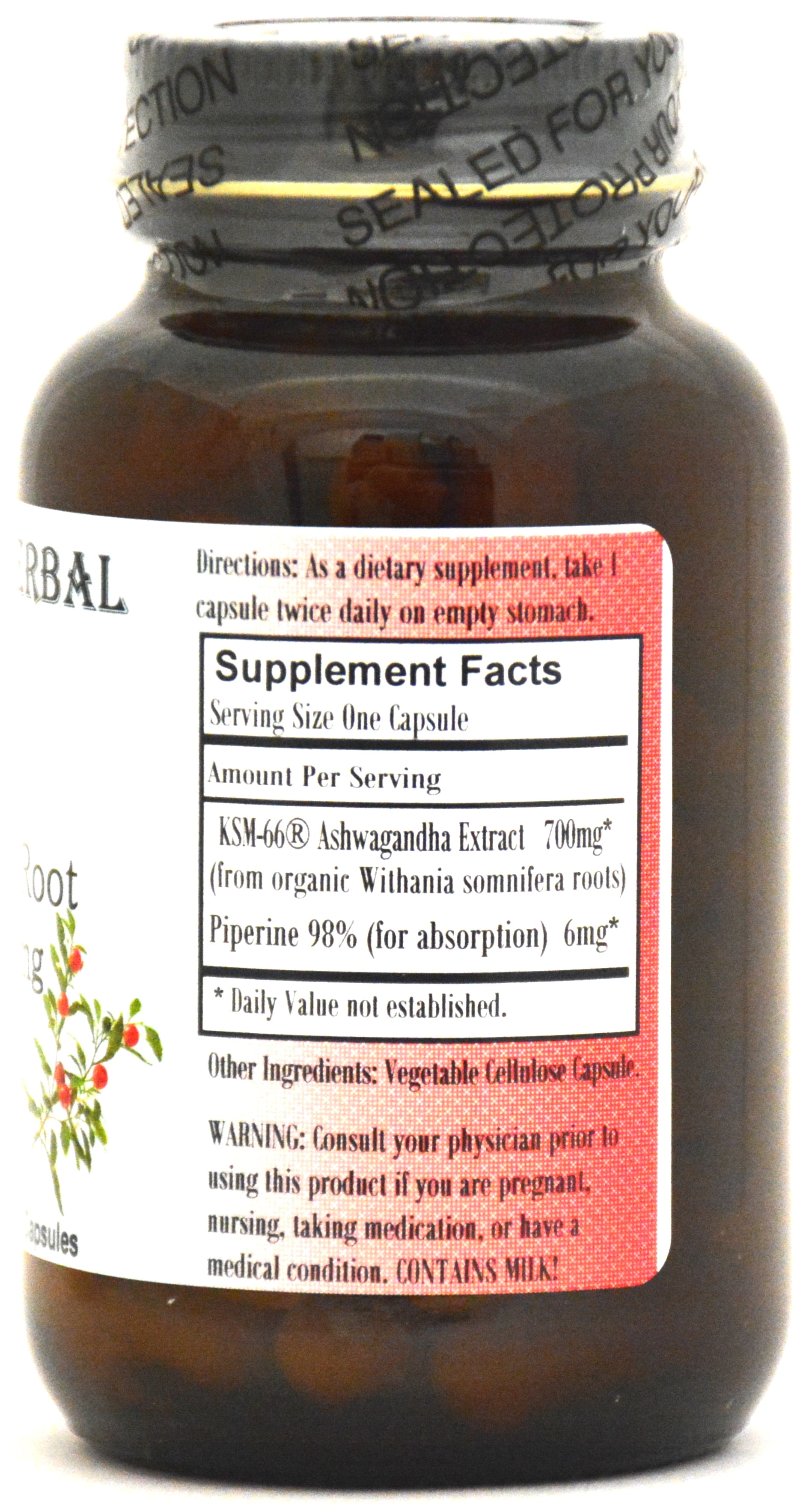 KSM-66 Ashwagandha Extract – 5% Withanolides by HPLC – 60 700mg VegiCaps – Stearate Free, Bottled in Glass! FREE SHIPPING on orders over $49!