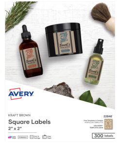 Avery Printable Blank Square Labels, 2′ x 2′, Kraft Brown, 300 Customizable Labels (22846)