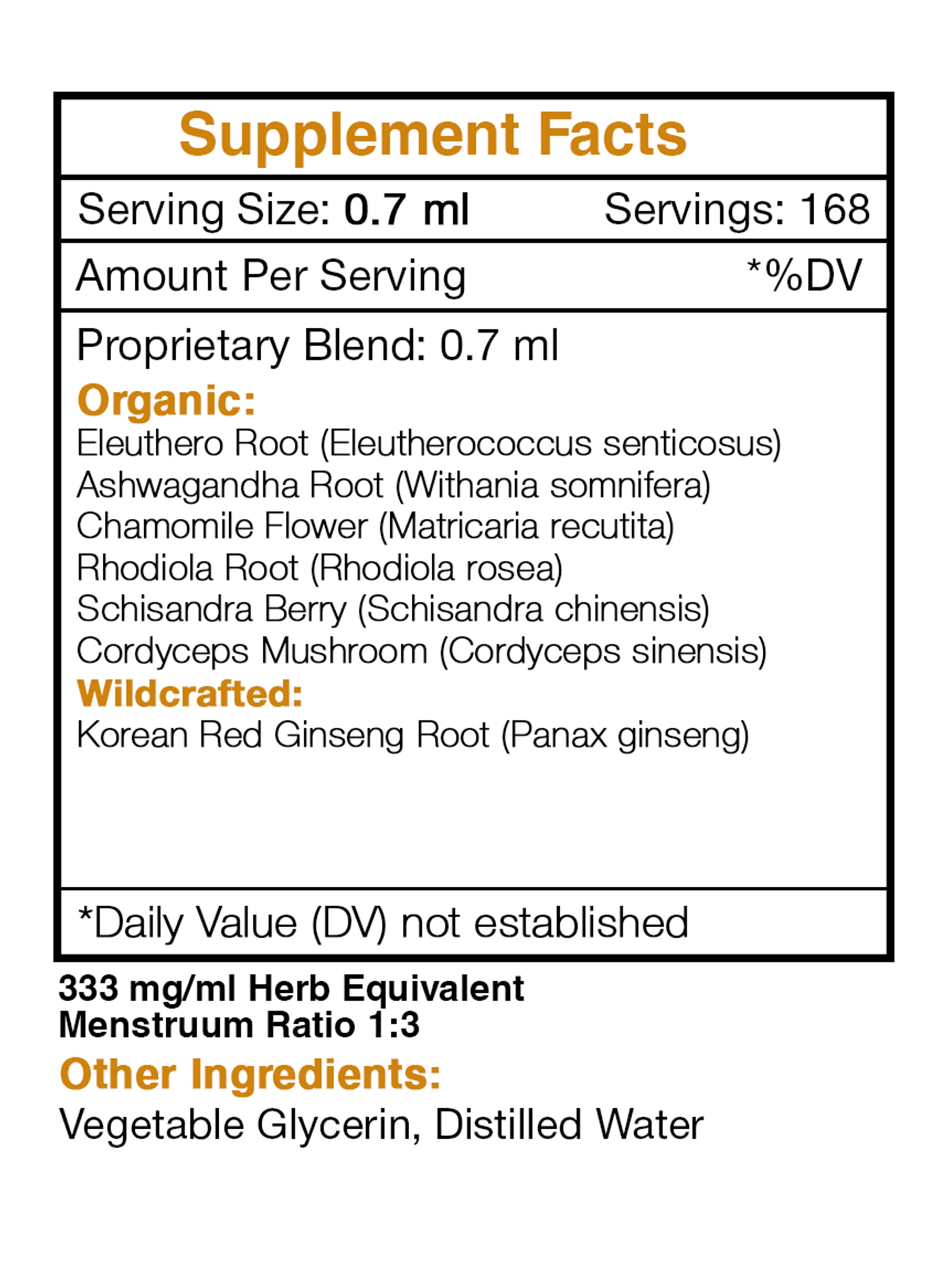 Desert Serenity Alcohol-FREE Extract, Tincture, Glycerite Eleuthero, Korean Red Ginseng, Ashwagandha, Chamomile, Rhodiola, Schisandra, Cordyceps. Adaptogen/Stress-free Formula 4 oz