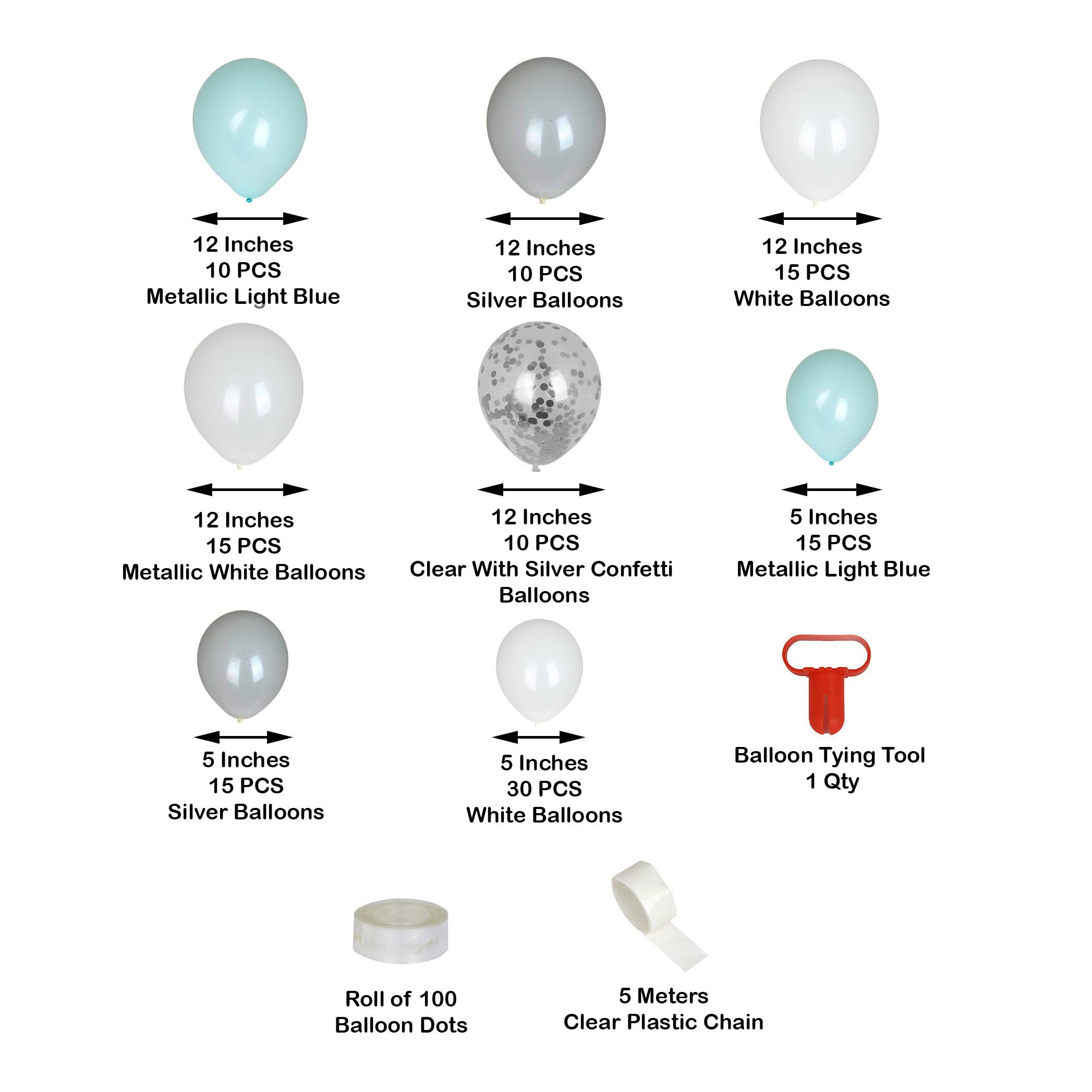 BalsaCircle 120 Light Blue White Silver Clear Plain Balloons Garland Arch Tools Kit Set