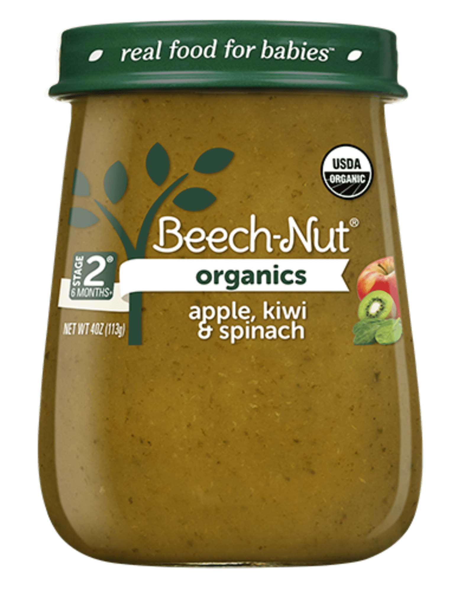 Beech-Nut Organics Non-GMO Stage 2 Baby Food, Apple Kiwi & Spinach, 4 oz Jar, 10 Pack