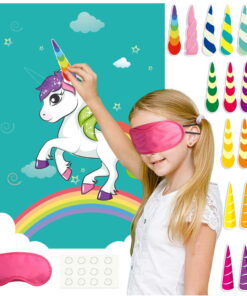 Unicorn Party Game, Happiwiz Pin The Horn on The Unicorn Birthday Party Game with 34 Horns, 2 Blind Folds for Unicorn Party Supplies, Kids Birthday Party Decorations