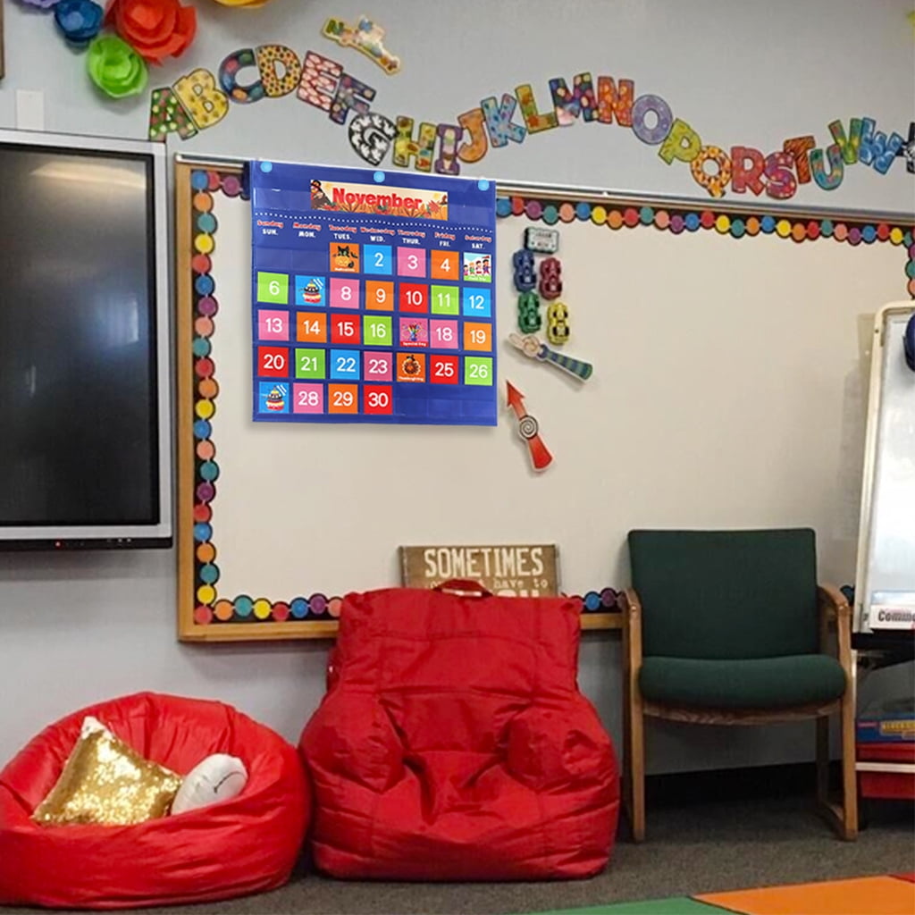 OOKWE Multi-in-1 Calendar Weather Pocket Chart Classroom Calendar for Kids Grades 3