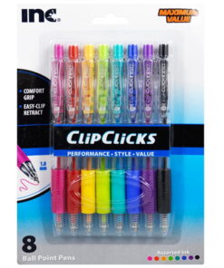 Inc 8 counts per pack Clipclick Pens Ball Point Assorted Color Pens