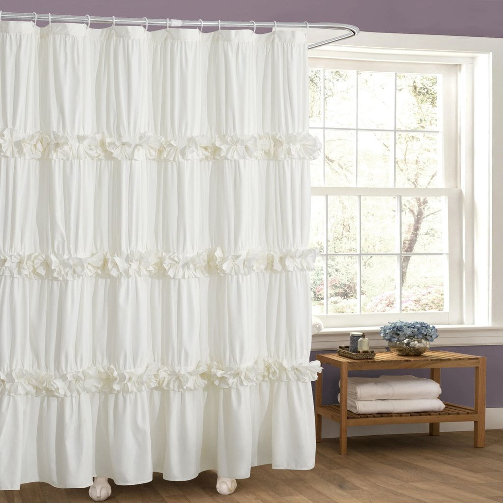 HIG Ivory Handcrafted Bow Tie Shower Curtain, 72′ x 72′, Cloth Fabric