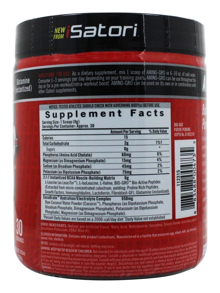 iSatori – Amino-Gro Muscle Building Amino Acid Formula Blue Razz Snow Cone – 9.52 oz