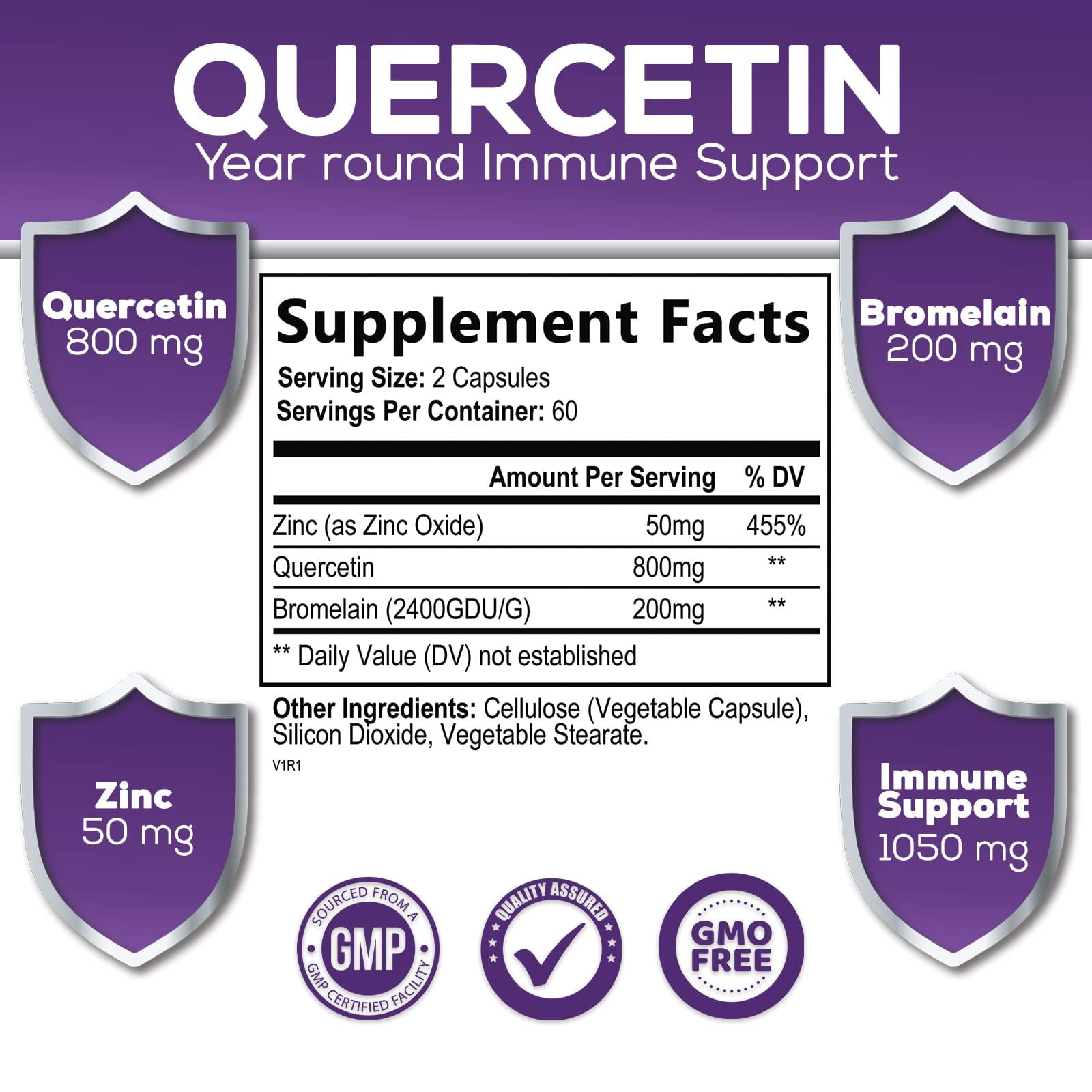 Nature’s Peak Quercetin 1050 mg with Bromelain & Zinc – Natural Immune Support Supplement with Extra Strength Antioxidants & Bioflavonoids for Supporting Heart Health – Non-GMO – 120 Vegan Capsules