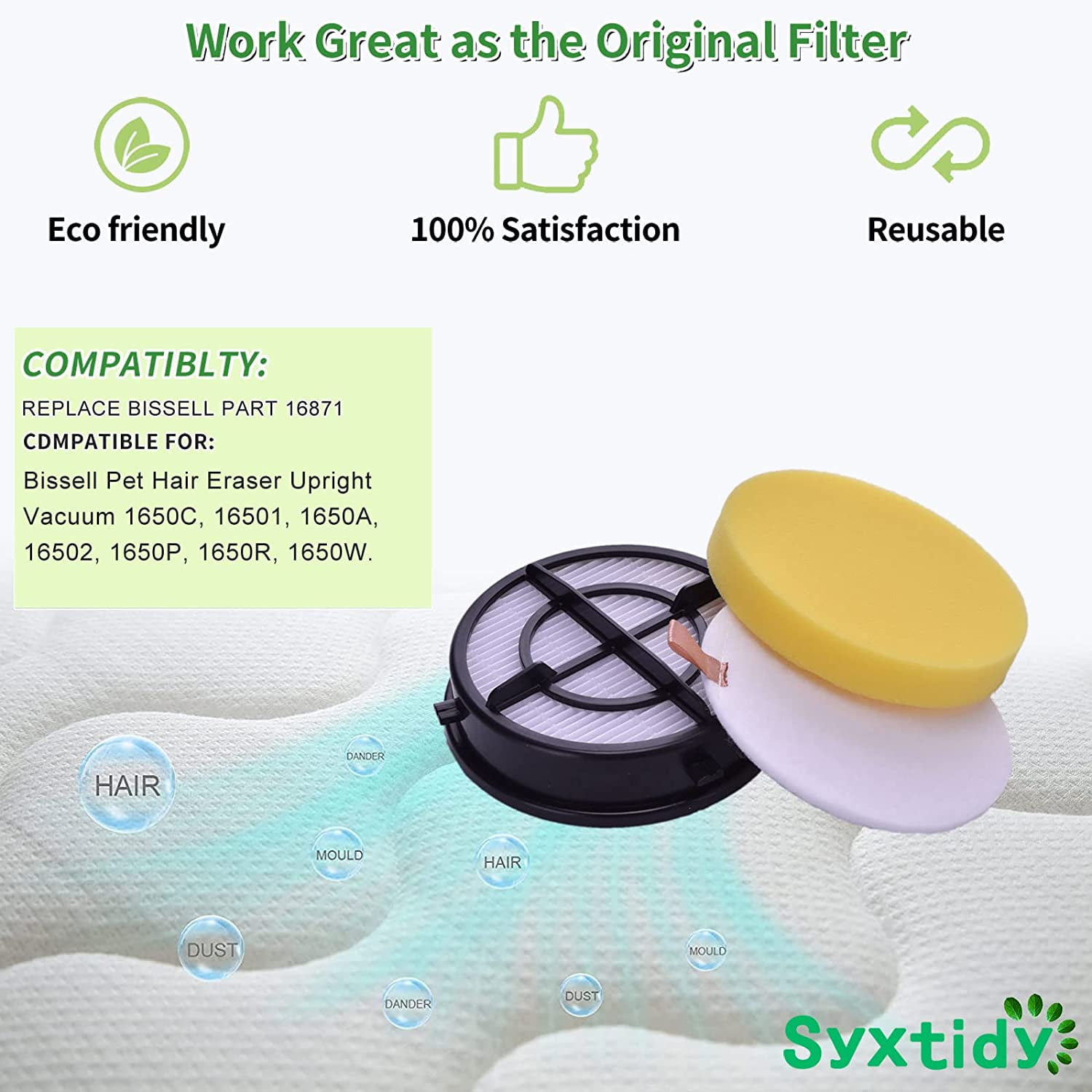 Hometimes Filters for Bissell Pet Hair Eraser Febreze Upright Vacuum Cleaners Replacements Filter Model 1650 Series, 1650A, 1650C, 16501, 16502, 1650P, 1650R, 1650W