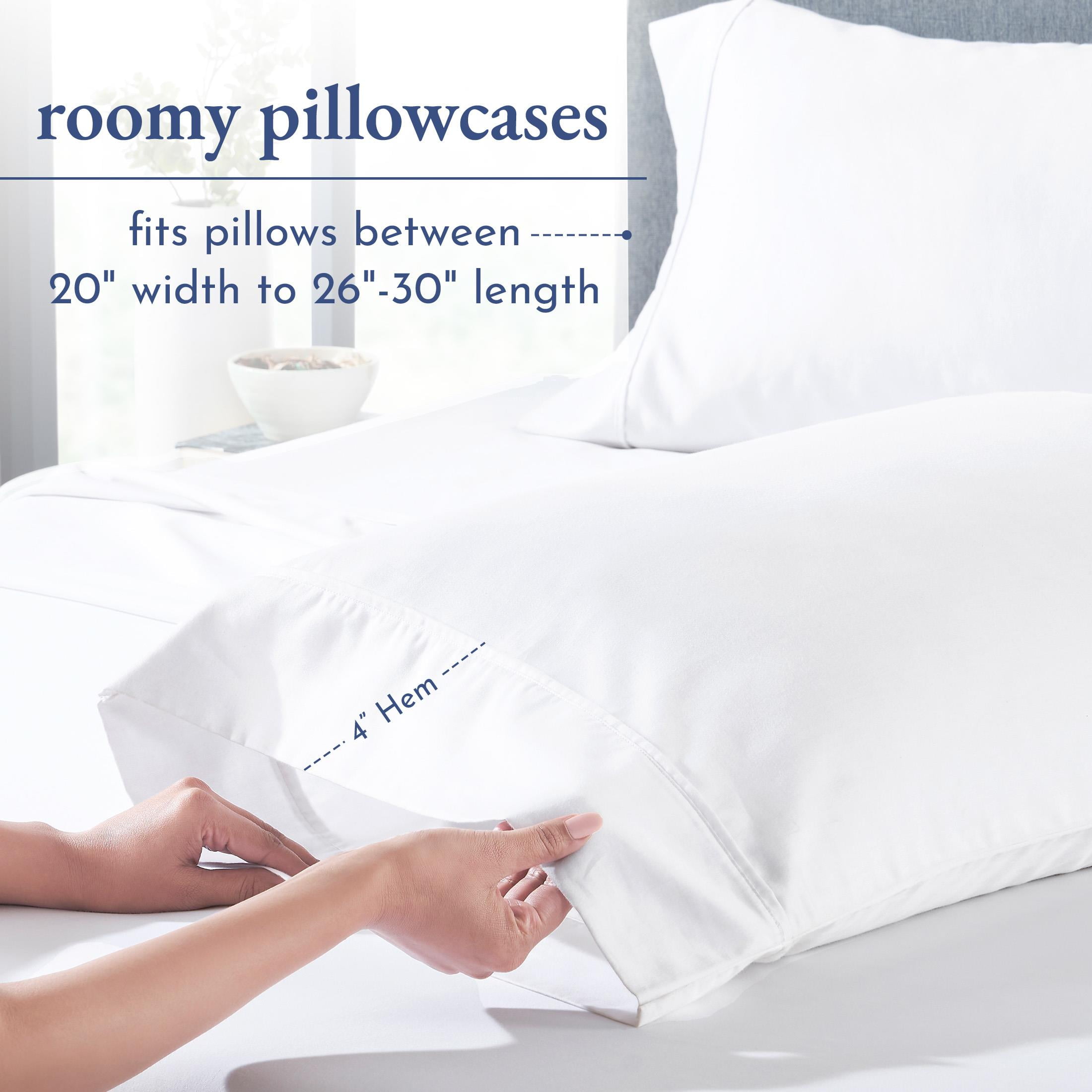 This white pillow cases set of 2 fits both standard and queen size pillows. They measure 21" W x 32" L (53cm x 76cm).