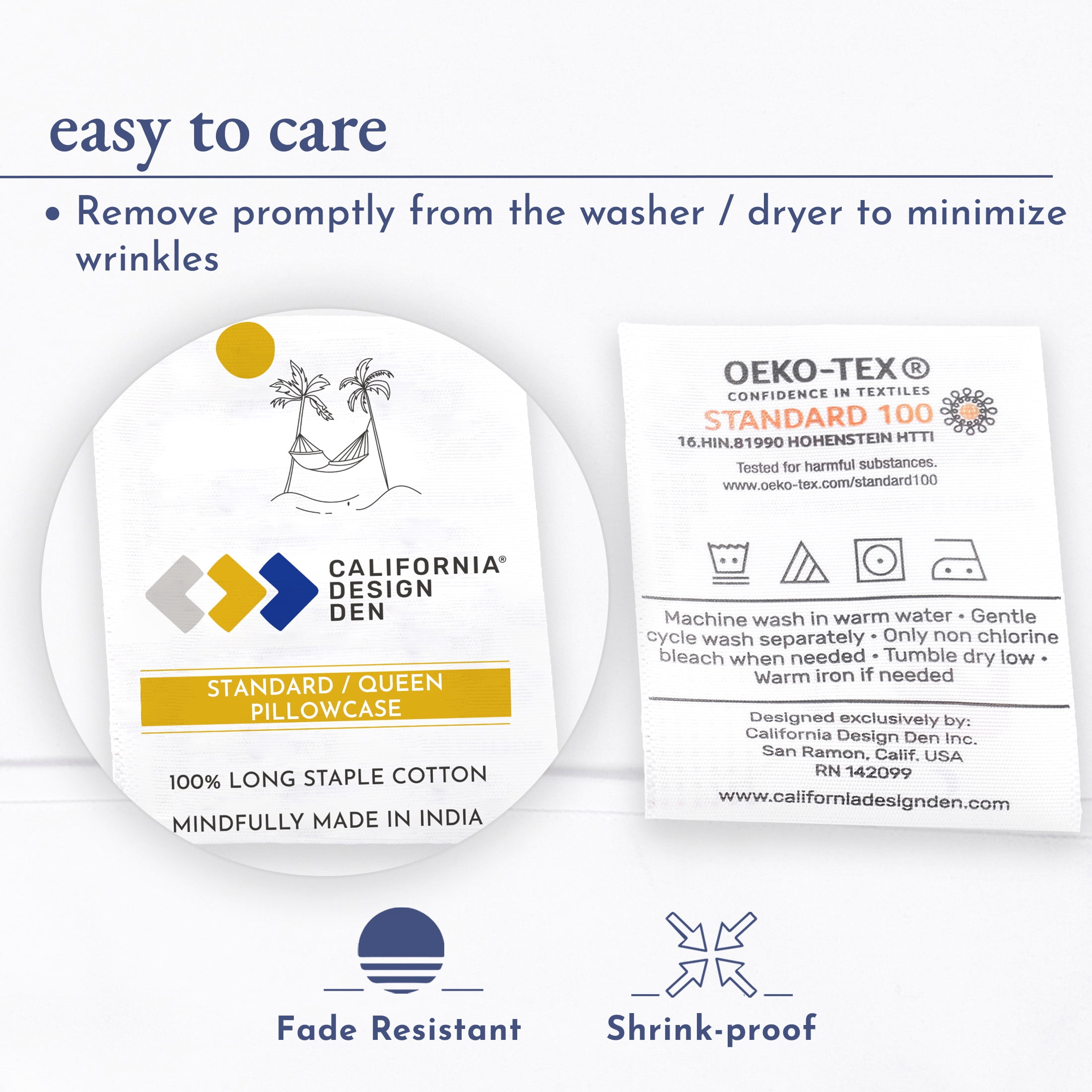 - Tested for pilling, shrinkage and colorfastness